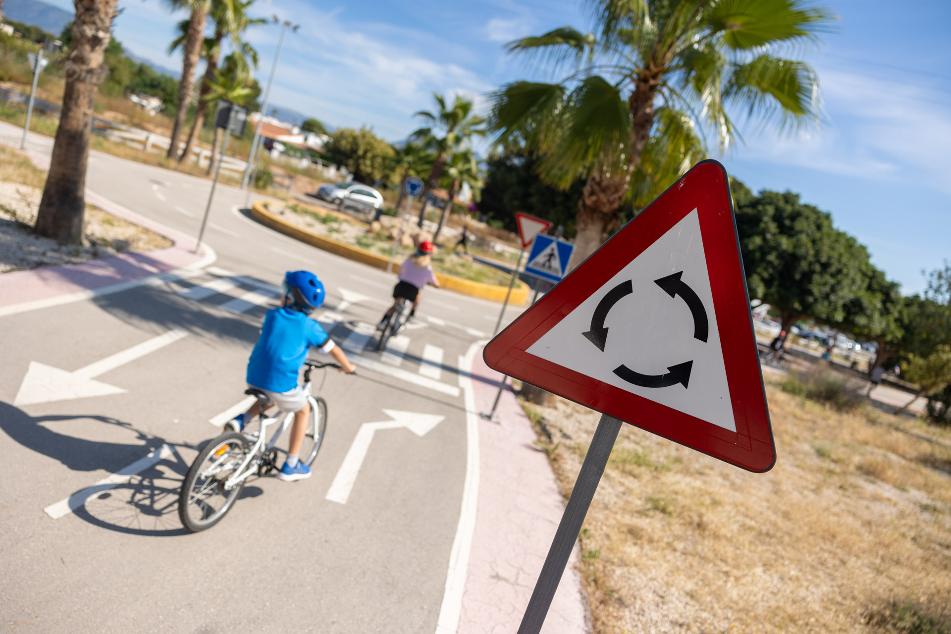 Para el alumnado de Primaria, el programa incluye dos actividades principales. La primera es «Yo sé ir en bici», una propuesta en la que un agente de la Policía Local se desplaza a los centros escolares durante 5 o 6 días para enseñar a montar en bicicleta a los niños y niñas que aún no han adquirido esta habilidad. La segunda actividad consiste en una sesión teórica de una hora donde se abordan aspectos clave de la seguridad vial: el uso correcto del cinturón de seguridad, normas de comportamiento en el coche y el autobús, circulación en bicicleta y el rol del peatón.