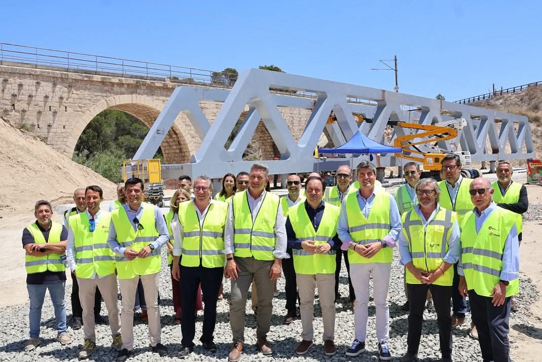 El conseller ha hecho este anuncio en su visita a las obras que se ejecutan en el apeadero de Terra Mítica, en el que está previsto instalar a escasos metros un viaducto metálico sobre el barranco del Murtal. Ha estado acompañado por el presidente de la Diputación de Alicante y alcalde de Benidorm, Toni Pérez, así como por el director gerente de FGV, Alfonso Novo.