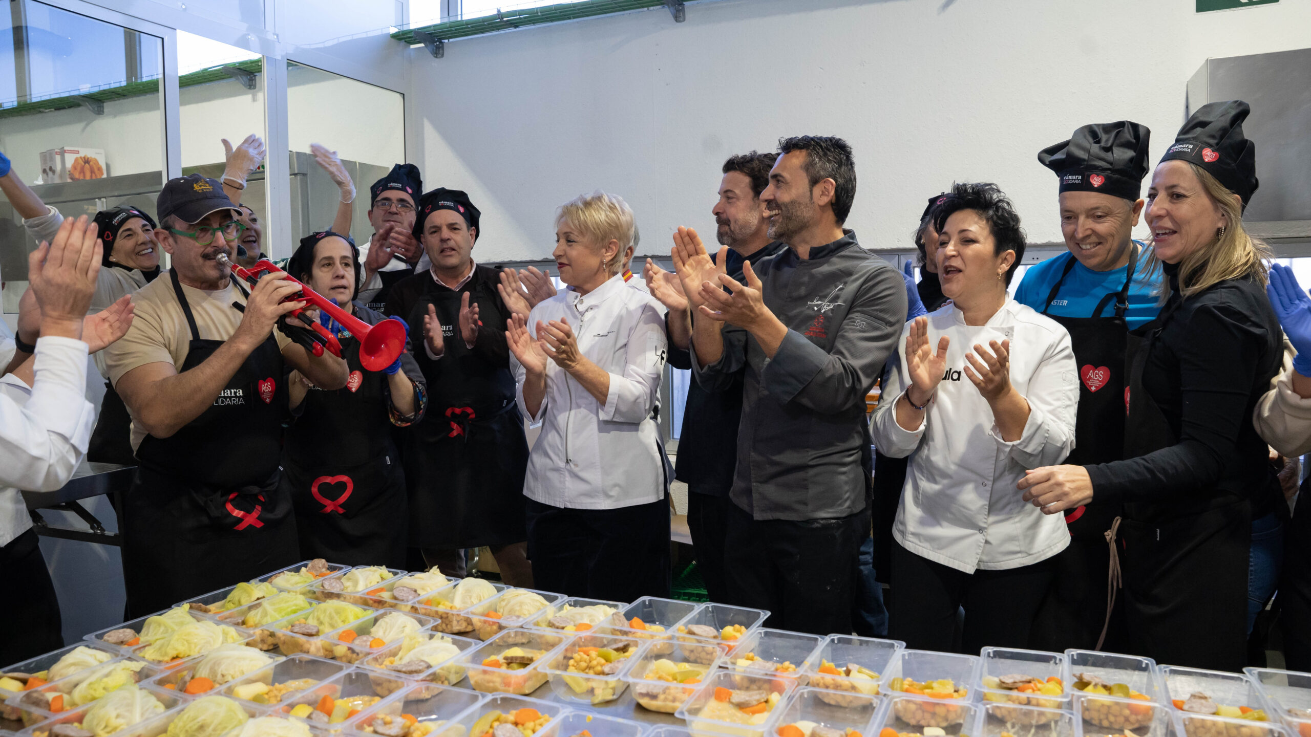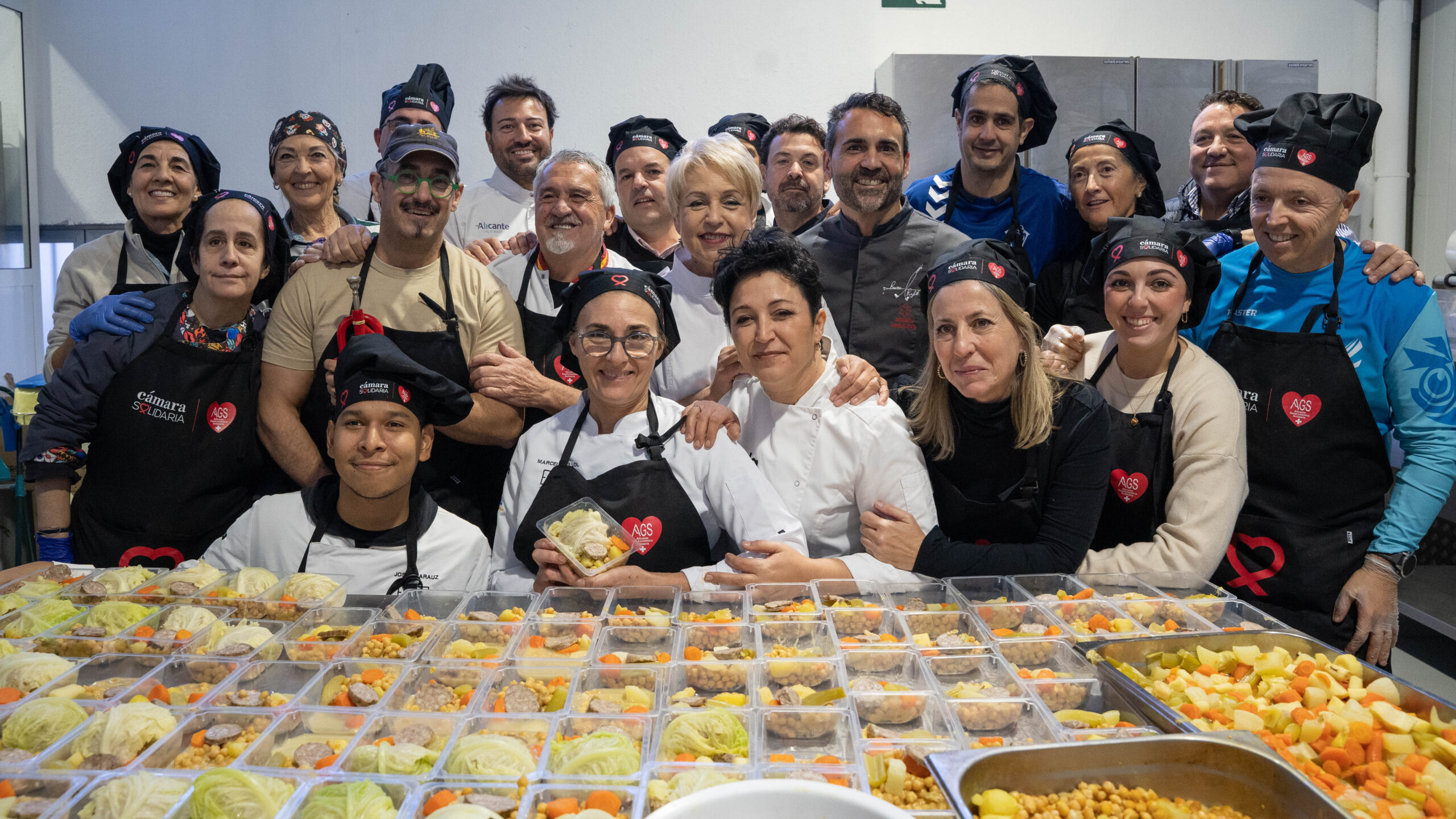 Cámara Solidaria-Alicante Gastronómica Solidaria (AGS) cocinará y distribuirá en Nochebuena y Navidad más de 5.500 menús navideños entre los colectivos más vulnerables y personas sin hogar de la provincia de Alicante así como en municipios valencianos afectados por la DANA. Durante el día de hoy, en su elaboración han participado chefs con Estrella Michelin como Susi Díaz de La Finca; Paco Cano de El Xato; Joaquín Baeza Rufete de Restaurante Baeza & Rufete; los Soles Repsol Pablo Montoro, Aurora Torres, Dani Frías y el considerado como mejor pastelero del mundo, Paco Torreblanca. Todos ellos acompañados por Joseph Arau, jefe cocina AGS, Ginés Lorente, jefe cocina Hotel Meliá Alicante, además de empresarios alicantinos y los voluntarios de AGS, conocidos como #HéroesConDelantal.