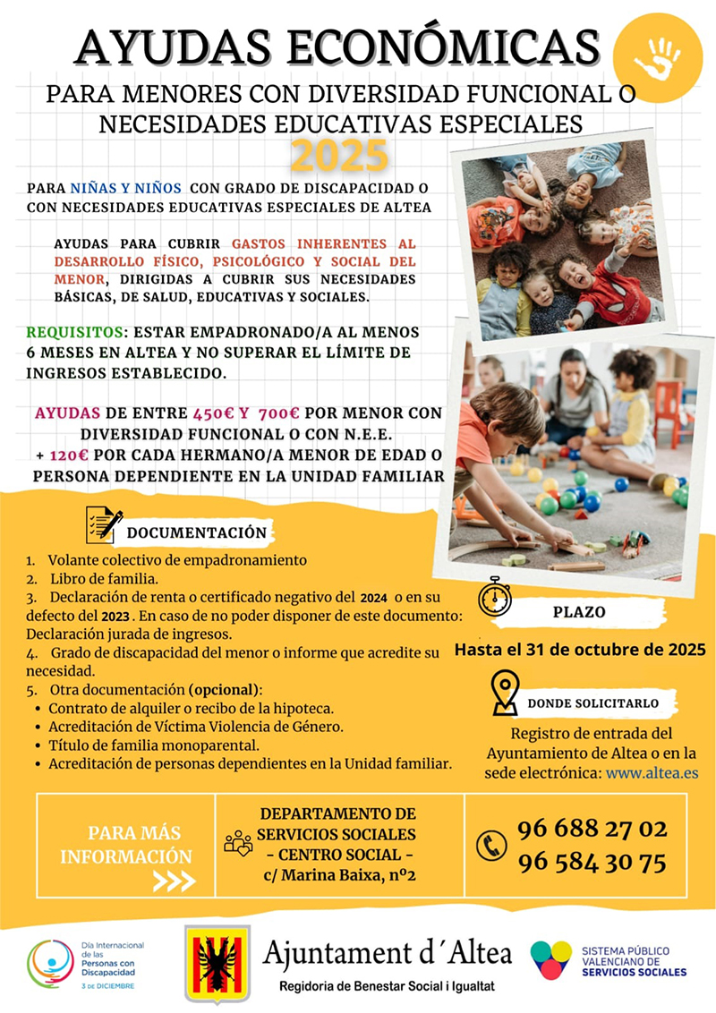 Altea ofrece ayudas a familias con hijos con diversidad funcional