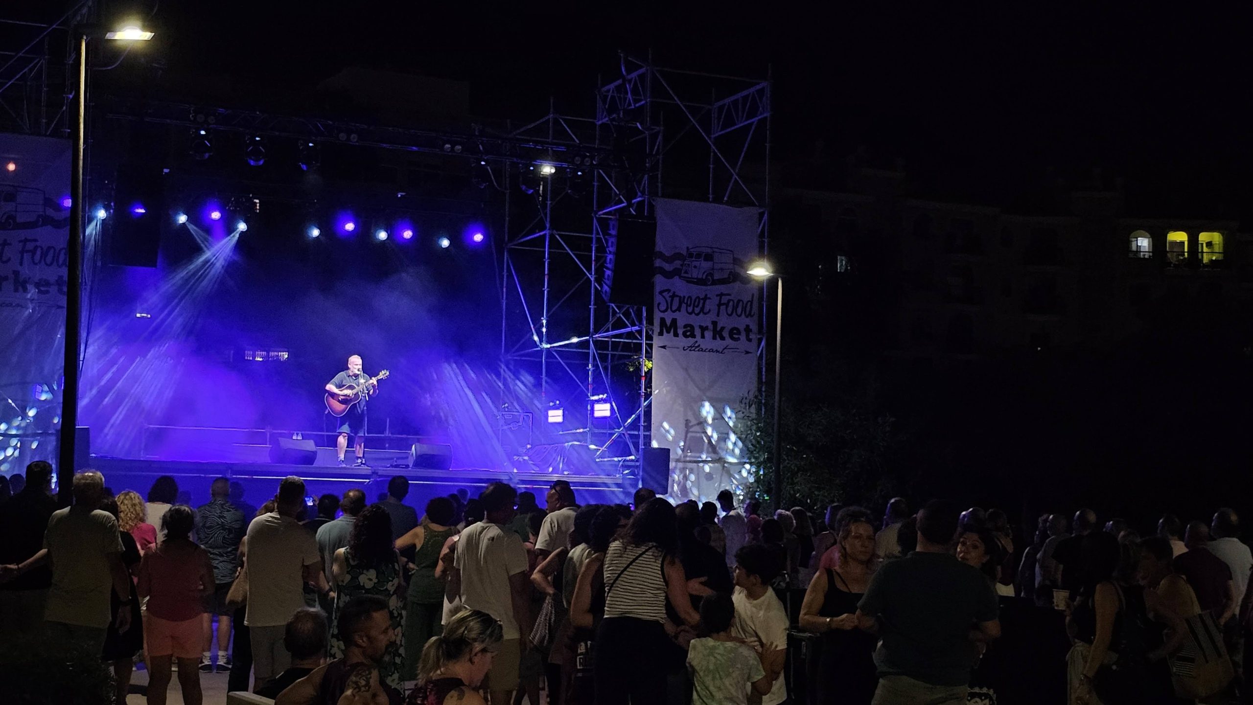 Anoche arrancó la segunda edición de La Vila Street Food Market. Hasta el domingo, el parque de la Antoneta se ha convertido en un espacio de ocio dirigido a todos los públicos. Anoche, centenares de personas disfrutaron de la amplia oferta gastronómica y de la actuación del popular cómico y cantante Pablo Carbonell. Este espacio, junto al mar, cuenta con 12 food trucks de cocina de diferentes nacionalidades, un mercado de diseño, con puestos de arte, moda e ilustración y un escenario que albergará actuaciones musicales cada noche.