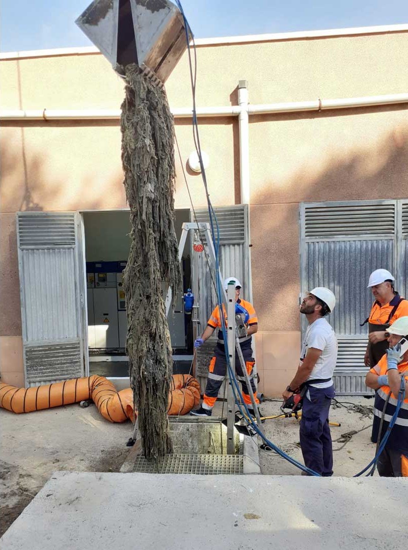 Operarios de Hidraqua llevan varios días desatascando las conducciones de la estación de bombeo de Severo Ochoa