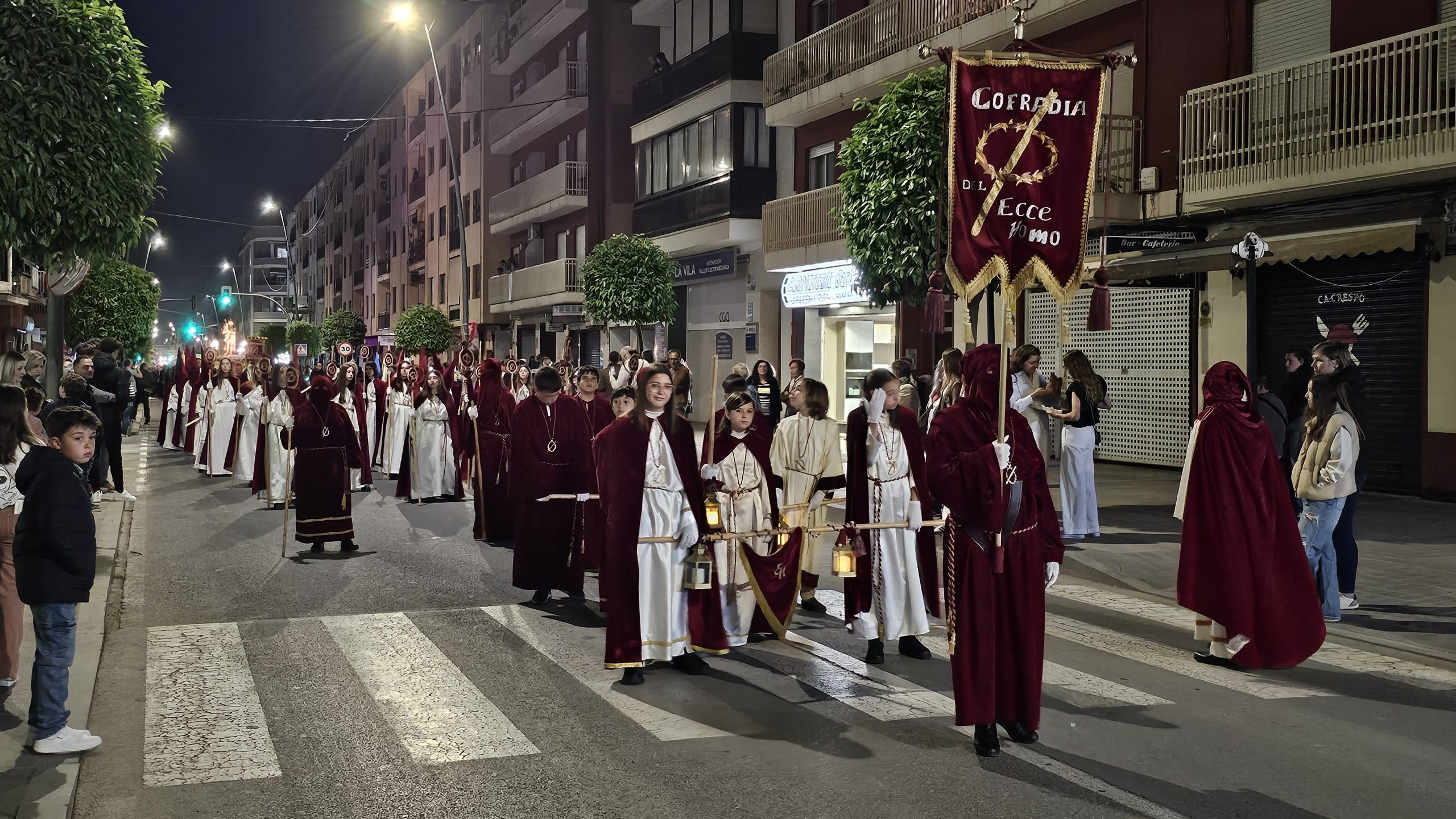La cofradía Ecce Homo protagoniza la noche del Jueves Santo en la Semana Santa de Villajoyosa. La imagen, conocida popularmente como “el Senyor de la Canyeta”, es trasladada en procesión desde la calle Camino Viejo de Valencia por la calle Colón hasta llegar a la iglesia de Nuestra Señora de la Asunción, acompañada de sus cofrades.