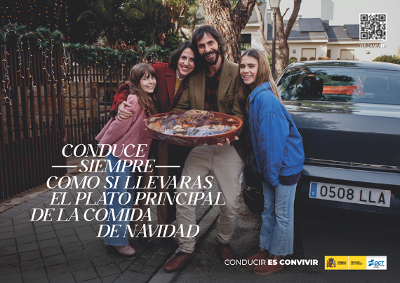 Con el slogan “Conduce siempre como si llevaras el plato principal de la comida de Navidad” y el hastag #ConducirEsConvivir, la campaña podrá verse y escucharse desde mañana viernes 13 de diciembre y hasta el próximo 5 de enero en televisiones, radios, medios impresos, soportes digitales, redes sociales, cine y exteriores.