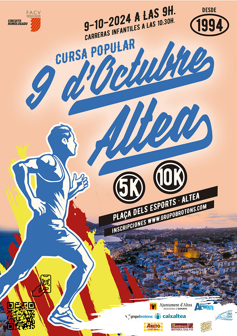 “Como cada año, Altea celebra la Carrera 9 d’Octubre para conmemorar el Día de la Comunitat Valenciana y es una carrera que hace 30 años que se está celebrando y que cada año crece más y despierta más interés entre los corredores que vienen a Altea a correr en la prueba”; ha comentado la responsable municipal de Deportes, quien ha recordado que en la pasada edición los inscritos, entre niños y adultos, sobrepasaron los 900.
