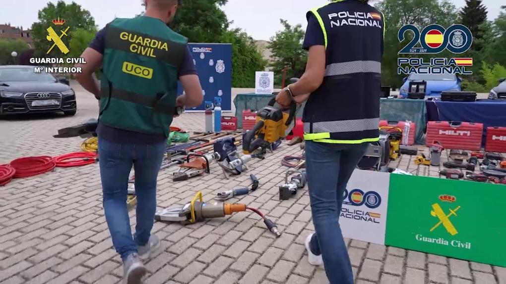 Durante el dispositivo se han realizado once registros domiciliarios –Alicante (8) y Madrid (3)– y siete en garajes –Alicante (6) y uno en Madrid– en los que se han intervenido más de 100.000 euros, tres armas de fuego, inhibidores frecuencia y localizadores de sistemas GPS, herramientas para cometer los robos (radiales, pinzas hidráulicas sustraídas, elementos de cerrajería) y cinco vehículos de alta gama sustraídos.