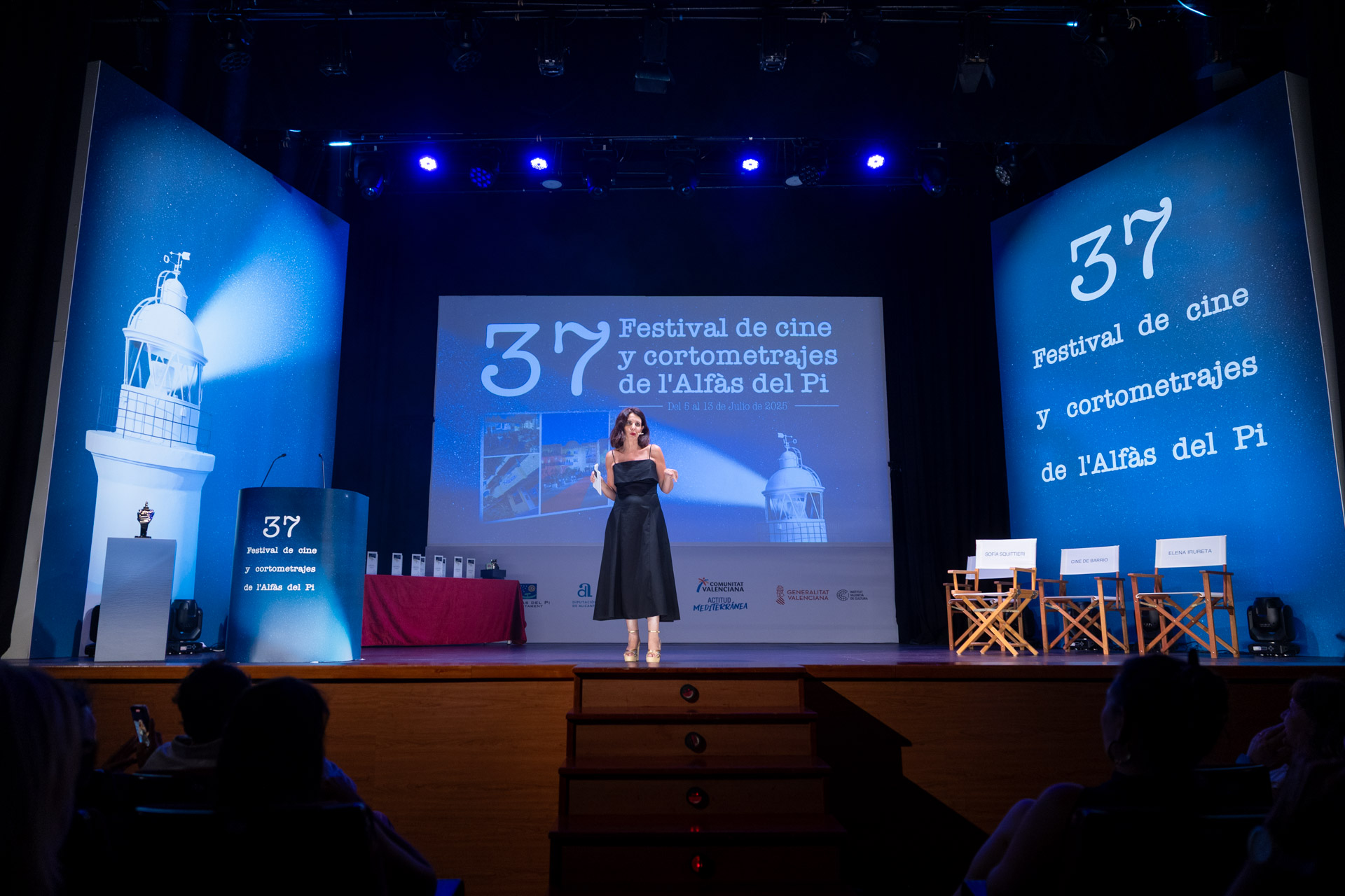 La actriz y guionista Marta González de Vega presentó con maestría y mucho sentido del humor la ceremonia de clausura del 37 Festival de Cine de l’Alfàs del Pi, que contó con la asistencia de personalidades del mundo del cine y la televisión como Martina d’Antiochia, Rodrigo Gibaja y Coria Castillo.