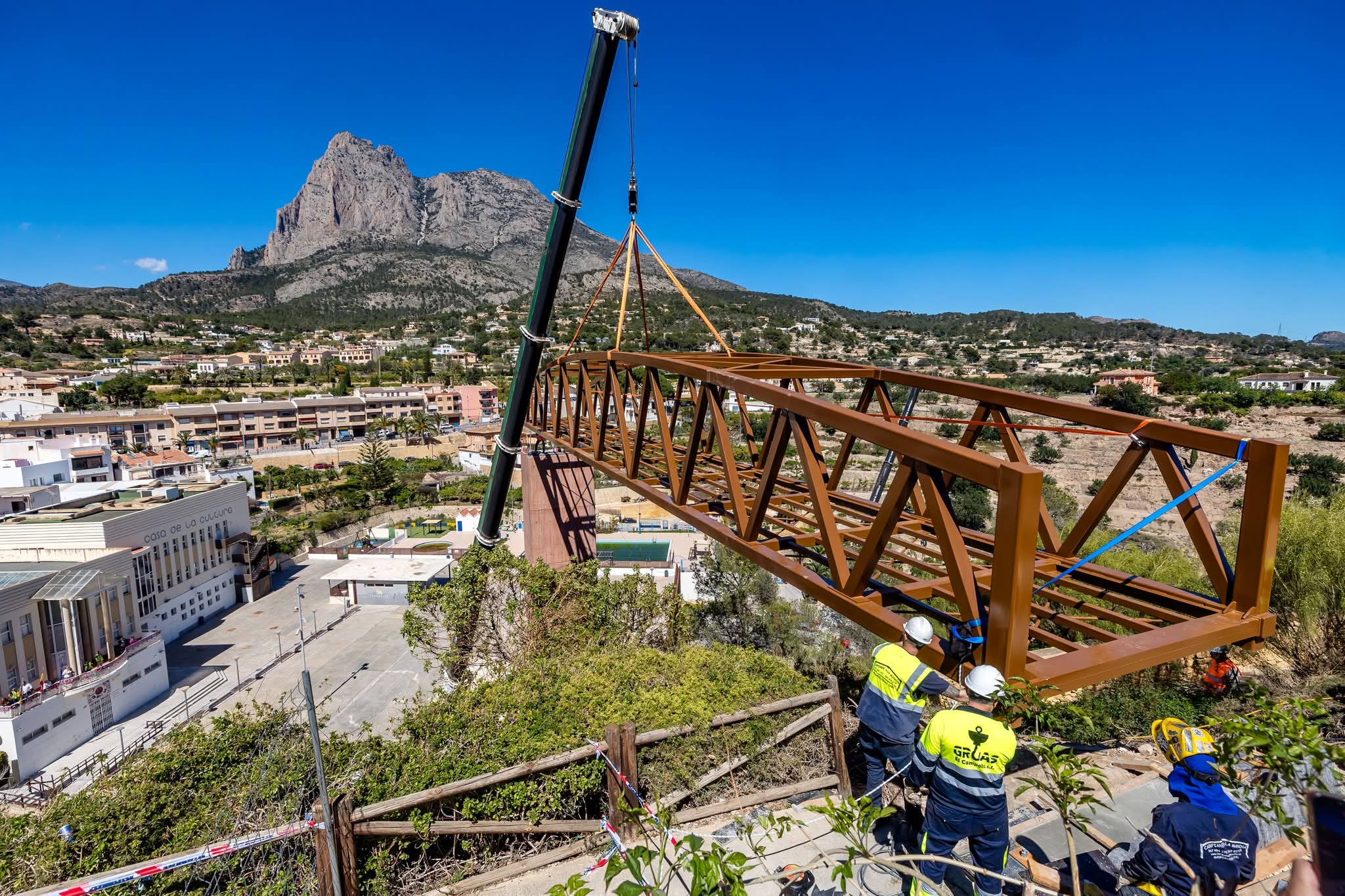 Finestrat instala la pasarela de 12 toneladas que conectará el ascensor con el Castell