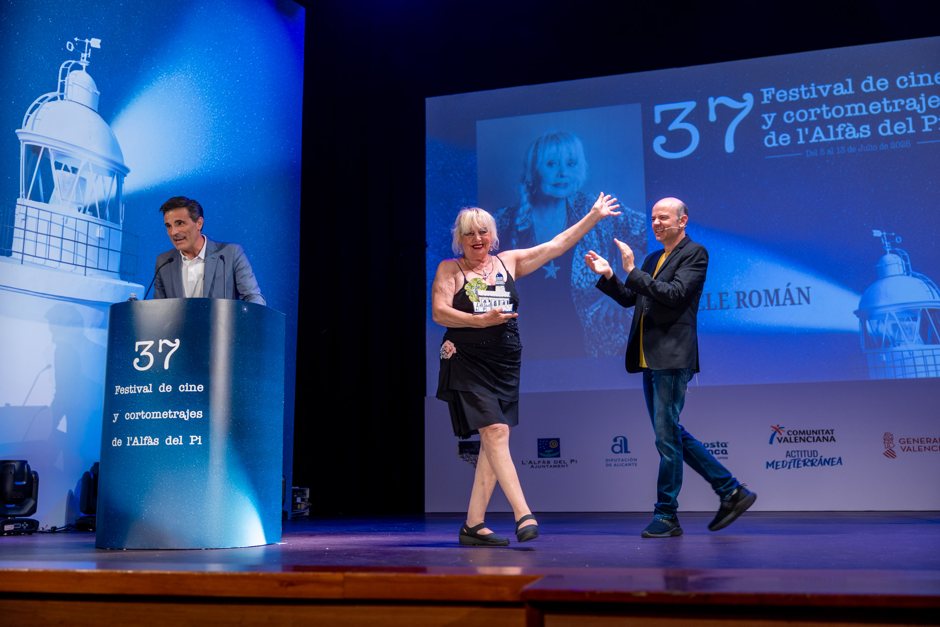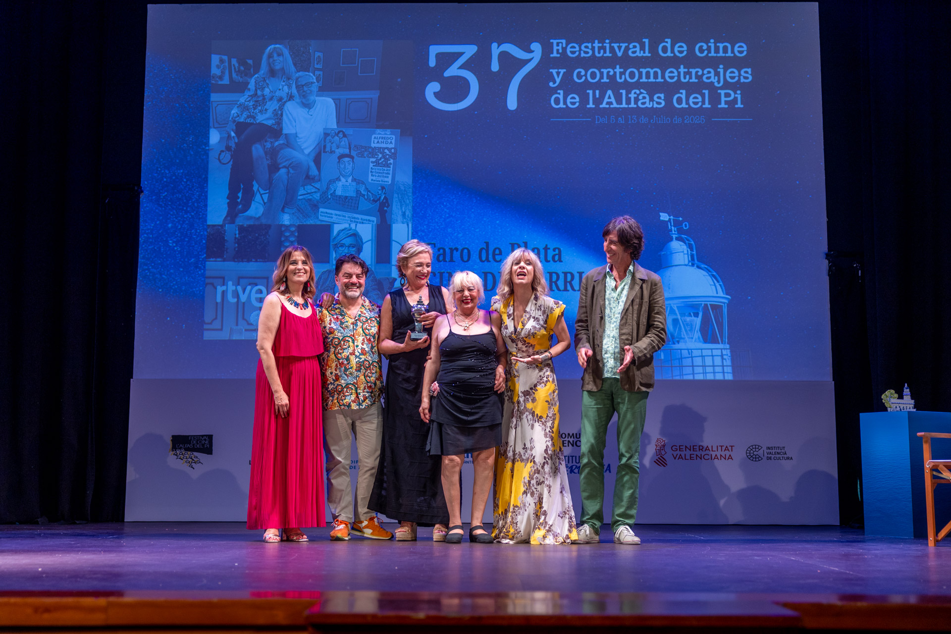 El 37 Festival de Cine de l’Alfàs del Pi comenzaba anoche oficialmente su andadura, con el homenaje y entrega de los Premios Faros de Plata a tres grandes del cine y la televisión: la actriz Elena Irureta, el actor Julián López, y el programa de TVE referente del cine popular español Cine de Barrio, en una gala inaugural divertida,  emotiva, y mágica conducida magistralmente por Jandro, no en balde, ya que el valenciano internacional además de actor, director y guionista es humorista y mago.