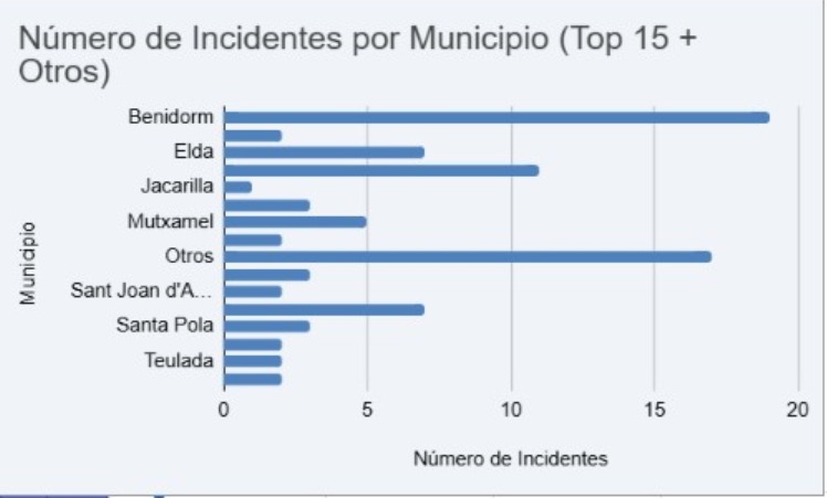 El registro de Avamet más elevado de la comarca se ha producido en Confrides, en la cima de Aitana, con rachas de hasta 118 km/h, seguido de Guadalest (106 km/h), Orxeta (101 km/h), Benidorm (100 km/h) y l’Alfàs del Pi (97 km/h). También se han superado los 90 km/h en municipios como Relleu y La Nucía, mientras que en Altea, Callosa d’en Sarrià y Polop se han registrado 89 km/h. Finalmente en Tarbena se han registrado rachas de 77 km/h y en La Vila Joiosa 72 km/h