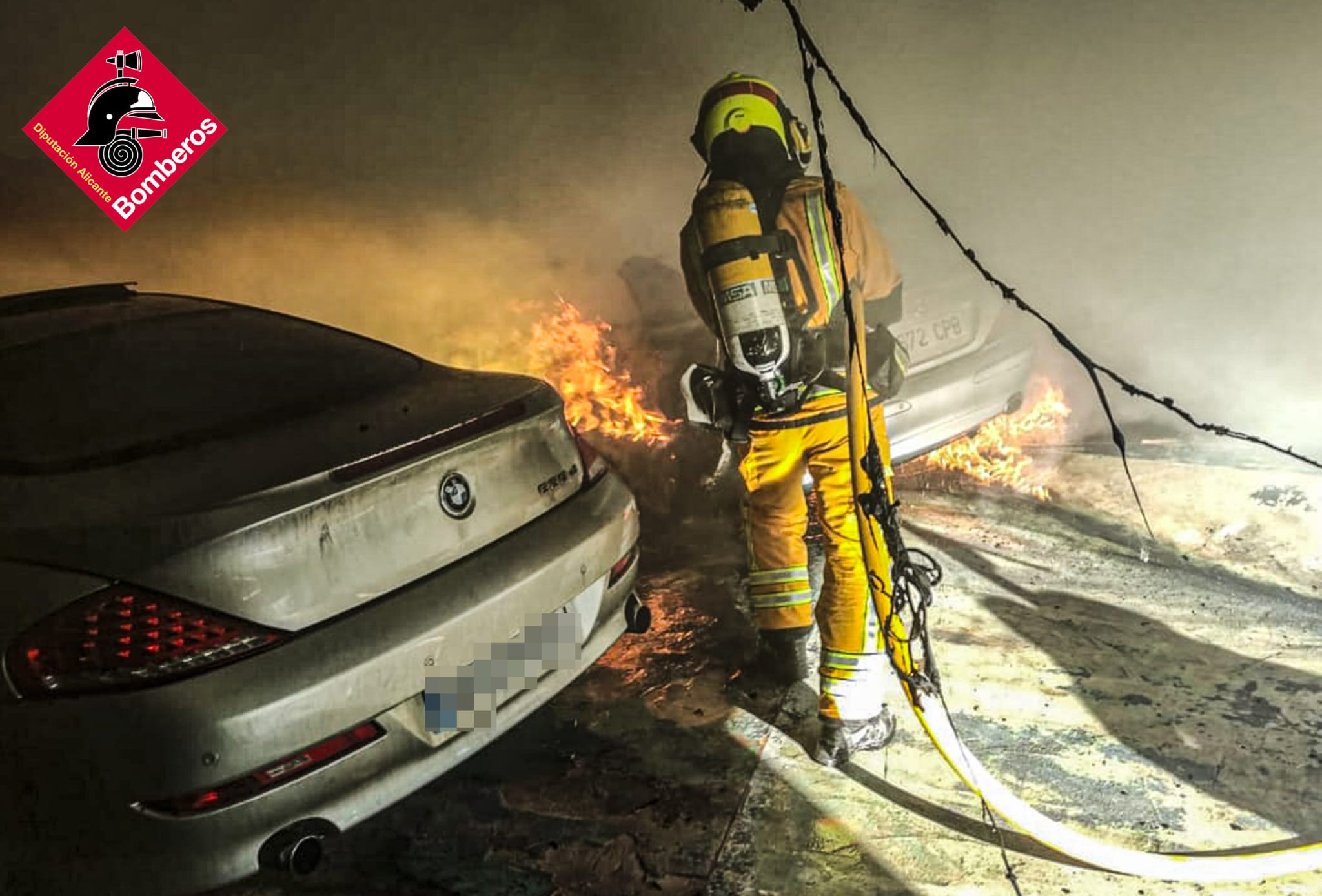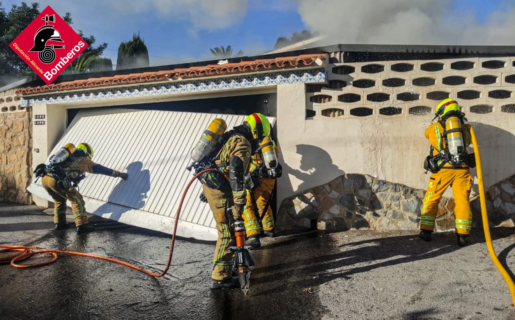 A su llegada, los efectivos de Bomberos han iniciado rápidamente las labores de extinción del incendio, el cual estaba confinado en el interior de un garaje del mencionado chalet, el fuego muy virulento, ha causado daños de consideración a tres vehículos estacionados en su interior. Los Bomberos del Parque con base en Benidorm, queremos agradecer la excelente coordinación con los efectivos de la Policía Local de La Nucia y Guardia Civil, en el desarrollo eficaz de dicha emergencia.