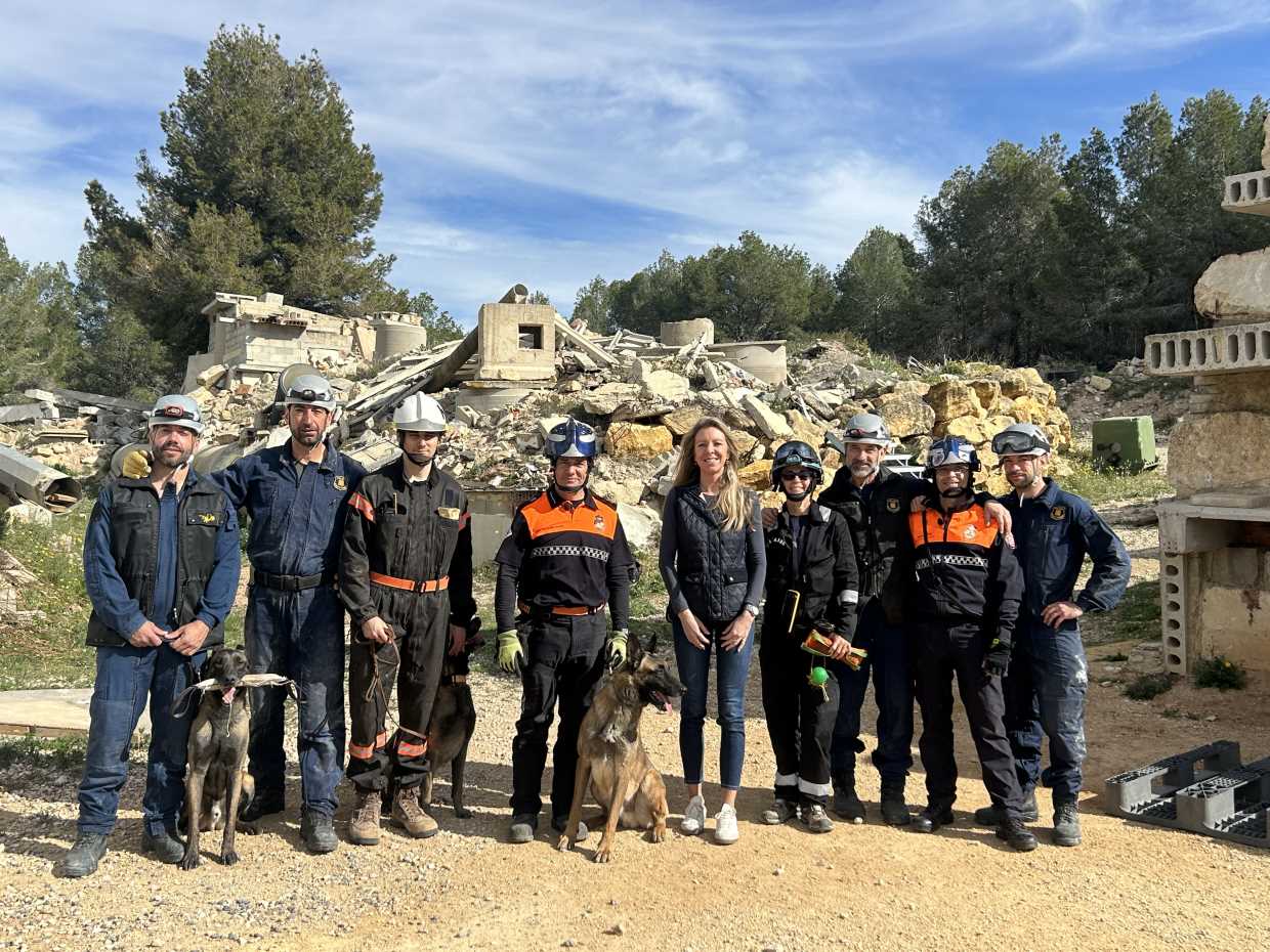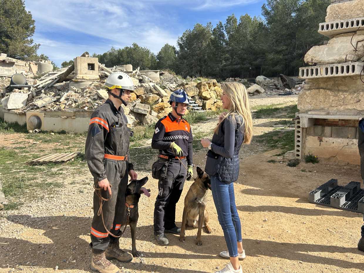 Jessica Gommans, concejala de Protección Animal, ha visitado las prácticas de los miembros de estas unidades caninas de rescate en el campo de entrenamiento, que una vez más ha vuelto albergar unidades de rescate para entrenar y realizar formación con los perros de sus unidades caninas en La Nucía.
