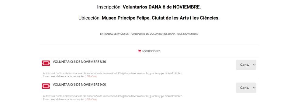 Tras la suscripción, los voluntarios deben acudir directamente al punto de coordinación de voluntariado habilitado en la Ciudad de las Artes y las Ciencias recoger el equipamiento que facilita la Generalitat y subir al autobús asignado.