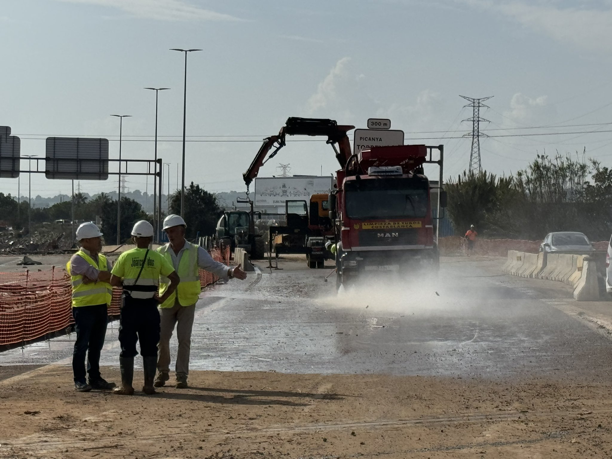 Por esta razón, ha señalado Martínez Mus, se está llevando a cabo una inyección de hormigón en la base “con el fin de garantizar la seguridad de esta infraestructura. En estos momentos se trabaja para tener operativo uno de los puentes en una primera fase y habilitar algunos carriles para la circulación”. De forma paralela, el acondicionamiento del resto de la vía avanza de manera significativa.