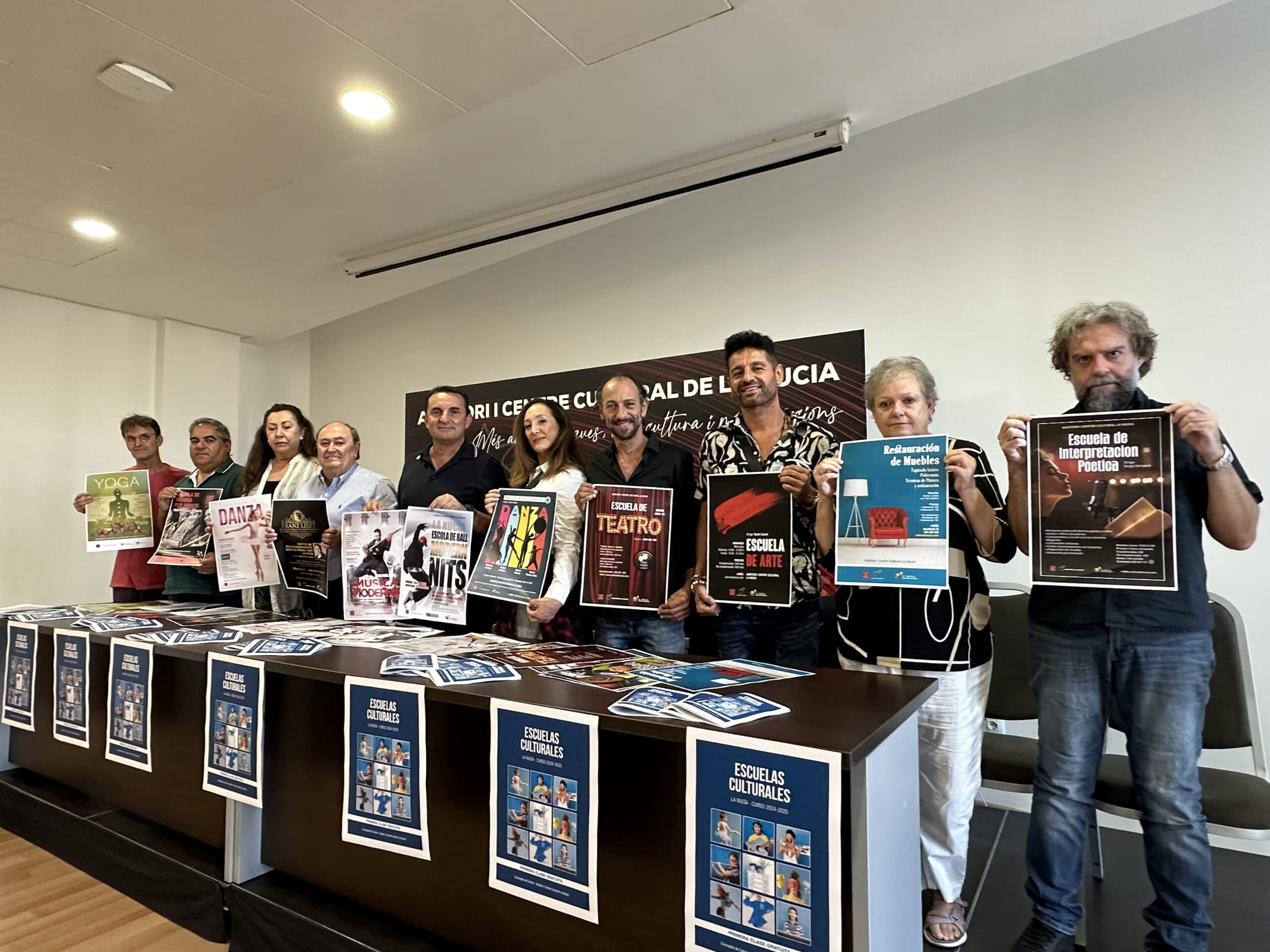 La presentación de las 14 Escuelas Culturales de La Nucía 24-25 ha contado con la presencia de Tachi Lloret, director Escuela de Arte, Beatriz Vaello, directora Escuela de Danza, Juan José Ivorra, pte. Unió Musical La Nucía, Anabel Ibañez, directora Escuela Danza +, Jesús Hernández, director Escuela de Yoga, Kike del Río, director Escuela de Teatro, Pilar Montero, directora Curso Restauración de Muebles, Sergio Sempere, director Escuela de Interpretación Poética; así como Pedro Lloret, concejal de Cultura y Bernabé Cano, alcalde de La Nucía