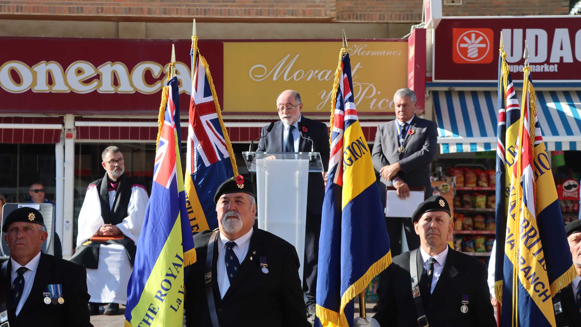 Allí, se ha celebrado el acto de homenaje, que ha comenzado con tres minutos de silencio en honor a los caídos y ha seguido con una breve homilía del reverendo Seabrook. Tras las intervenciones de varios representantes de la RBL en las que se ha reconocido la labor de los voluntarios en la recaudación de fondos para ayudar a las familias de excombatientes y agradecido al pueblo de Benidorm, Anny Reid ha resaltado que este año la recaudación se ha dedicado a la salud mental y ha significado que España es el país que más ayudas y apoyos recaba para la Poppy Appeal tras el Reino Unido. “Bien hecho, España” ha dicho.
