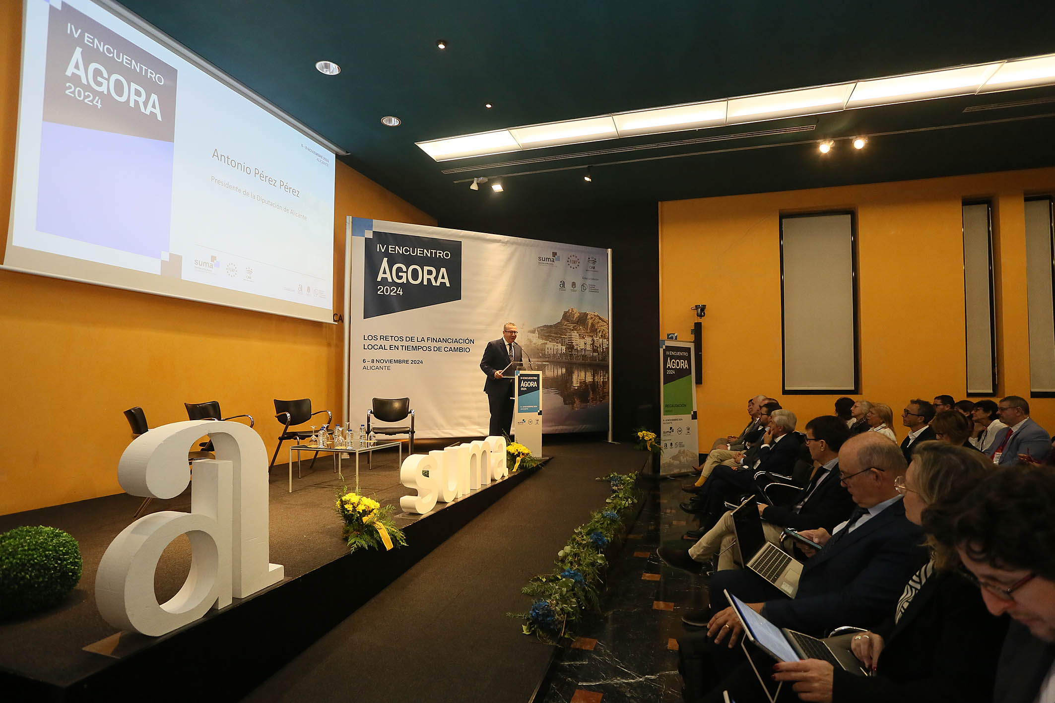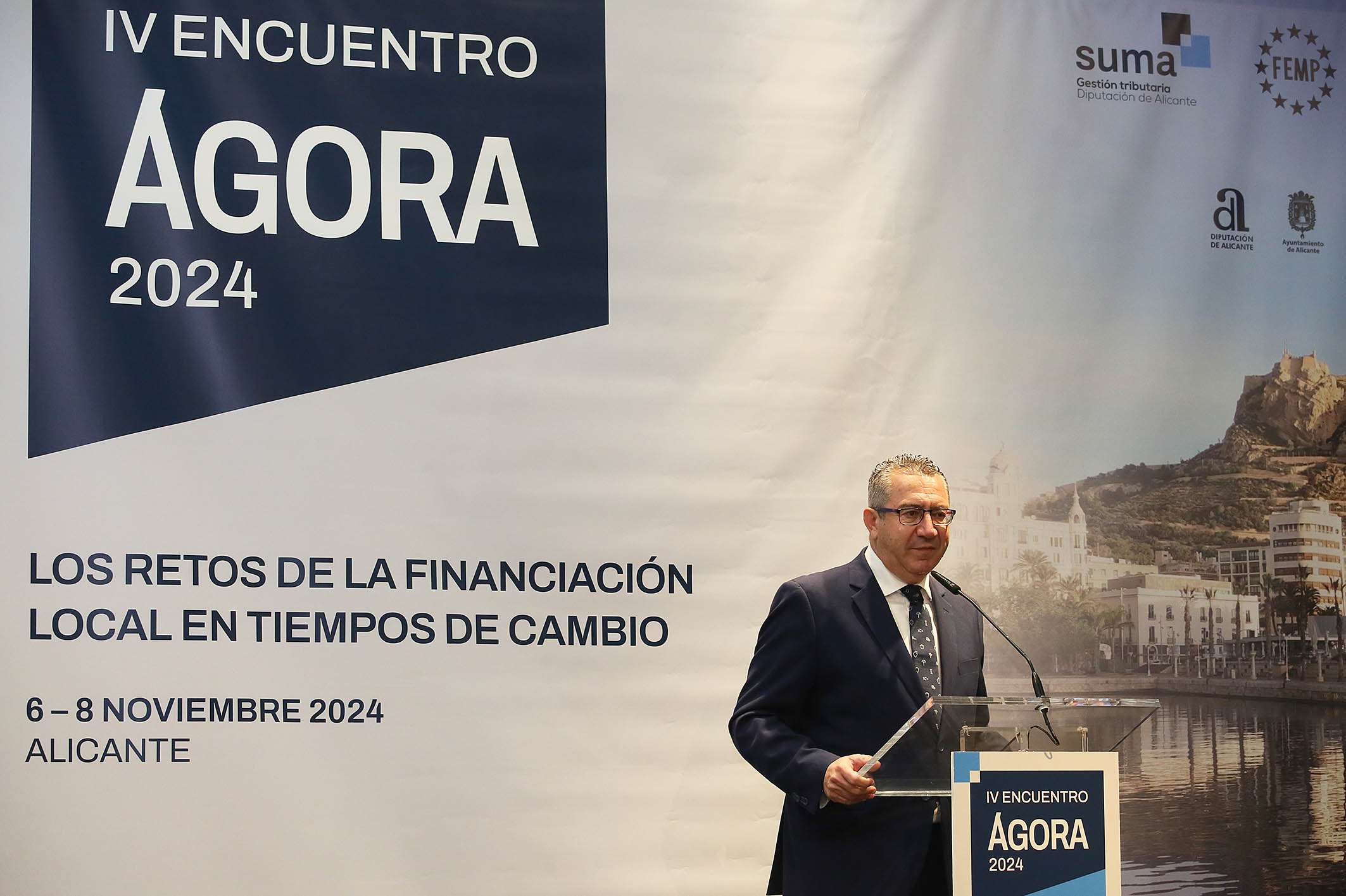 El presidente de la Diputación de Alicante, Toni Pérez, ha inaugurado esta mañana en el MARQ la jornada de conclusiones del IV Encuentro Ágora sobre Financiación Local centrada en el análisis de los problemas y preocupaciones que la gestión y recaudación tributaria plantea a los entes locales, entre ellos la tasa de recogida de basura derivada de la entrada en vigor de la nueva ley de residuos. Suma Gestión Tributaria ejerce de anfitrión de este encuentro, que arrancó ayer y que promueven la FEMP y la Diputación de Badajoz.