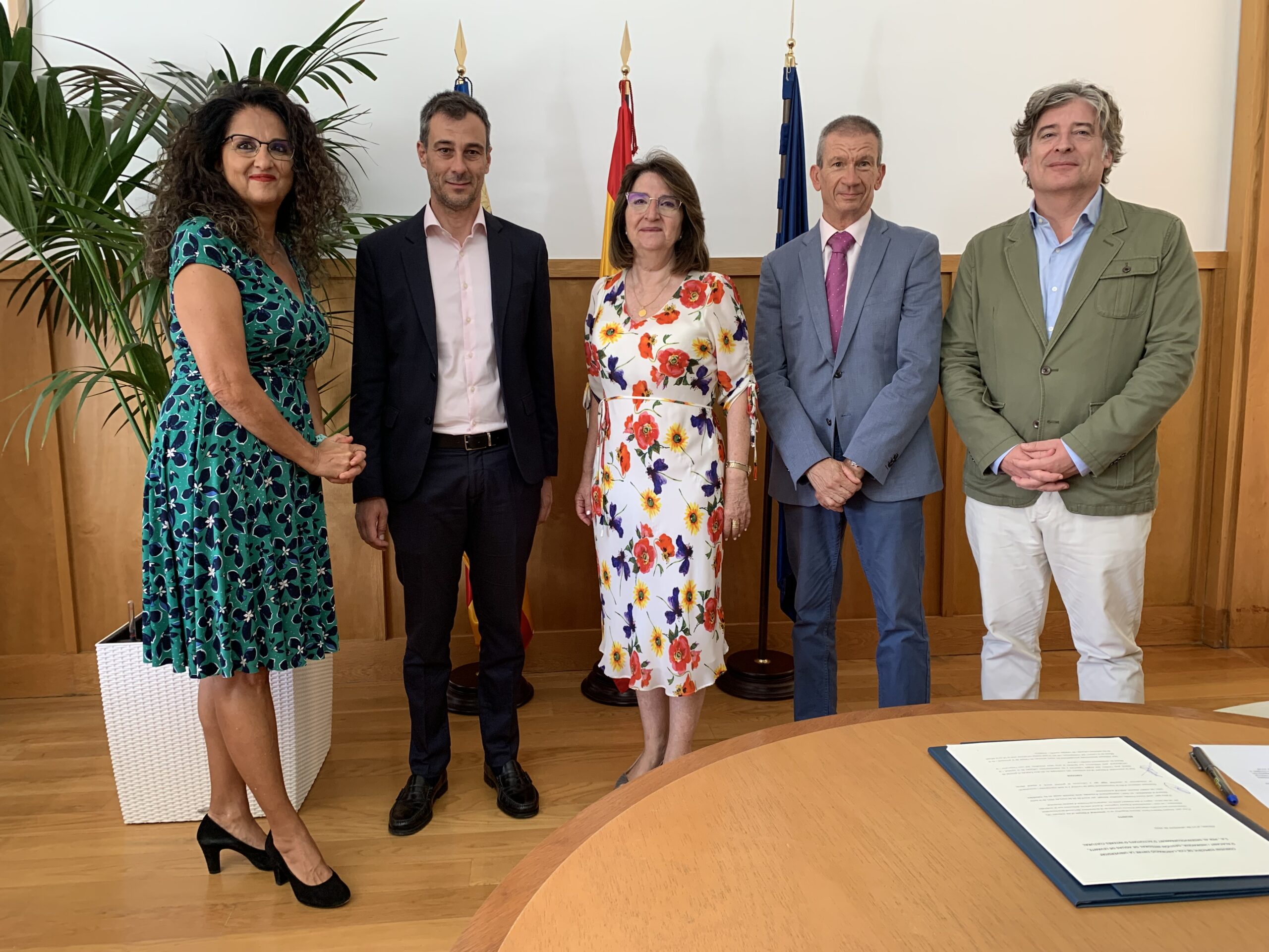 La firma ha tenido lugar en el despacho rectoral y ha contado con la asistencia de Juan Llopis, director de Relaciones y Proyectos Institucionales; Cata Iliescu, vicerrectora de Cultura, Deporte y Extensión Universitaria; y Martín Sanz, director de Comunicación y Relaciones Institucionales de Hidraqua.
