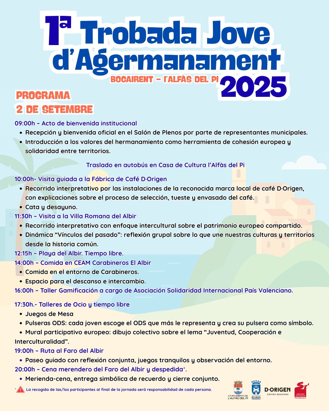 Las poblaciones de Bocairent y l’Alfàs del Pi, tras sellar una alianza para impulsar actividades juveniles y de cooperación, van a celebrar la 1ª Trobada Jove d’Agermanament durante dos días, el 2 de septiembre en l’Alfàs y el 4 de septiembre en Bocairent, con un amplio programa de actividades gratuitas, recomendadas eso sí para chicos y chicas mayores de 16 años