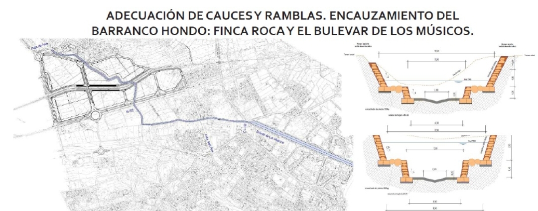 El primero contempla la adecuación de cauces y ramblas, y el encauzamiento del Barranco Hondo entre Finca Roca y el Bulevar de los Músicos, por un total de 961.129,80 euros.