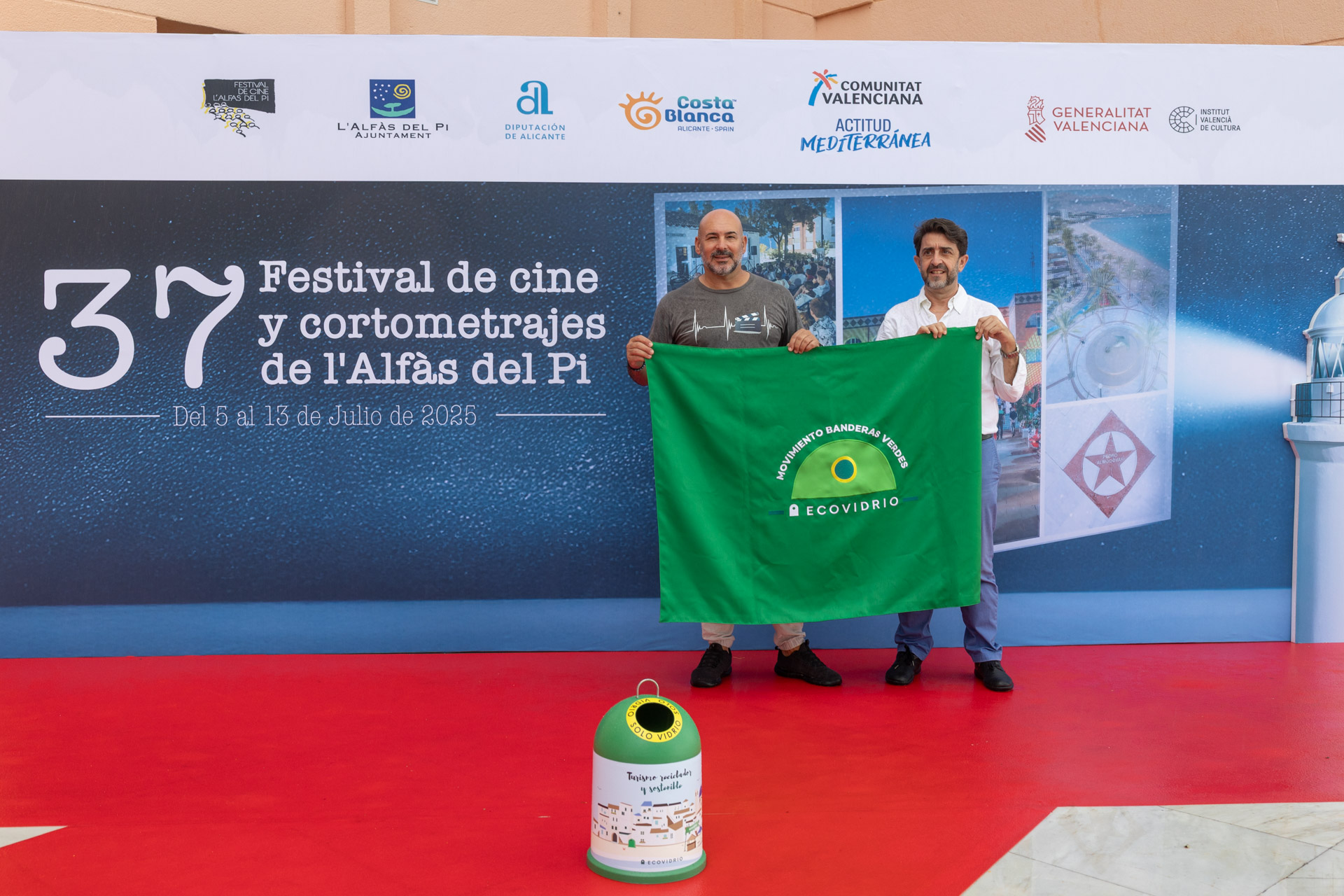 Esta mañana se ha presentado la 6ª edición de la campaña #MovimientoBanderasVerdes. Roberto Fuentes, subdirector de Gerencias de la Zona Este de Ecovidrio y responsable del Movimiento Banderas Verdes y el concejal de Medio Ambiente y Turismo de l’Alfàs, Luis Morant, han hecho un llamamiento a la participación no sólo del sector hostelero, sino de toda la población, de cada particular para contribuir con pequeños gestos cotidianos a una correcta gestión del reciclaje de residuos en beneficio de toda la comunidad, y por ende, de todo el planeta.