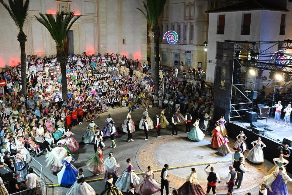 Un año más, tras la entrega de los ramos en el interior de la iglesia finalizó la Ofrenda de Flores con danzas tradicionales en la plaça Major a cargo de la reina Mari Aznar Arbona, su corte de honor 2025, Majorals y diferentes fester@s.