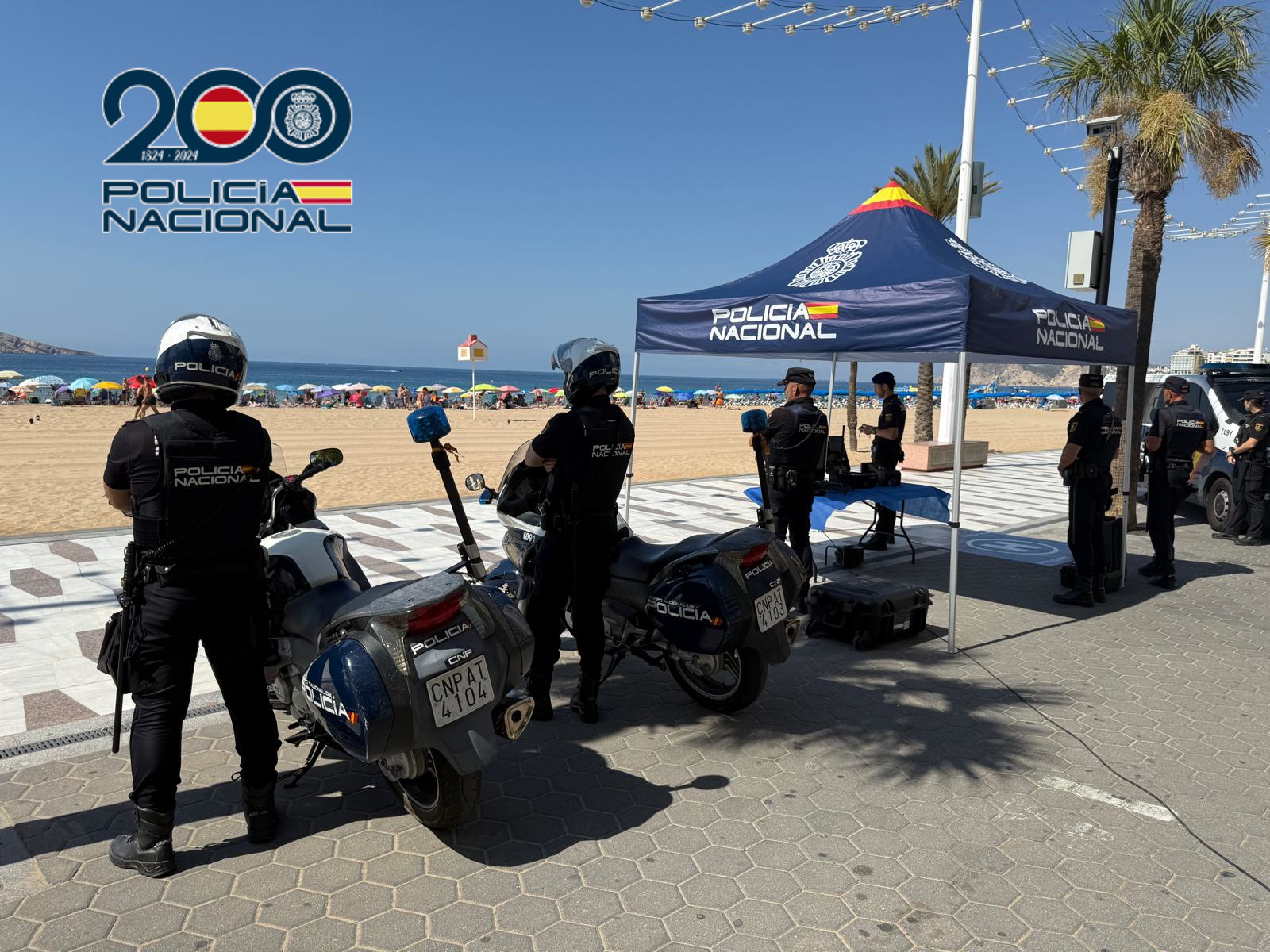 La Policía Nacional intensifica la vigilancia en las playas de Benidorm con dispositivos aéreos y patrullas terrestres para prevenir hurtos