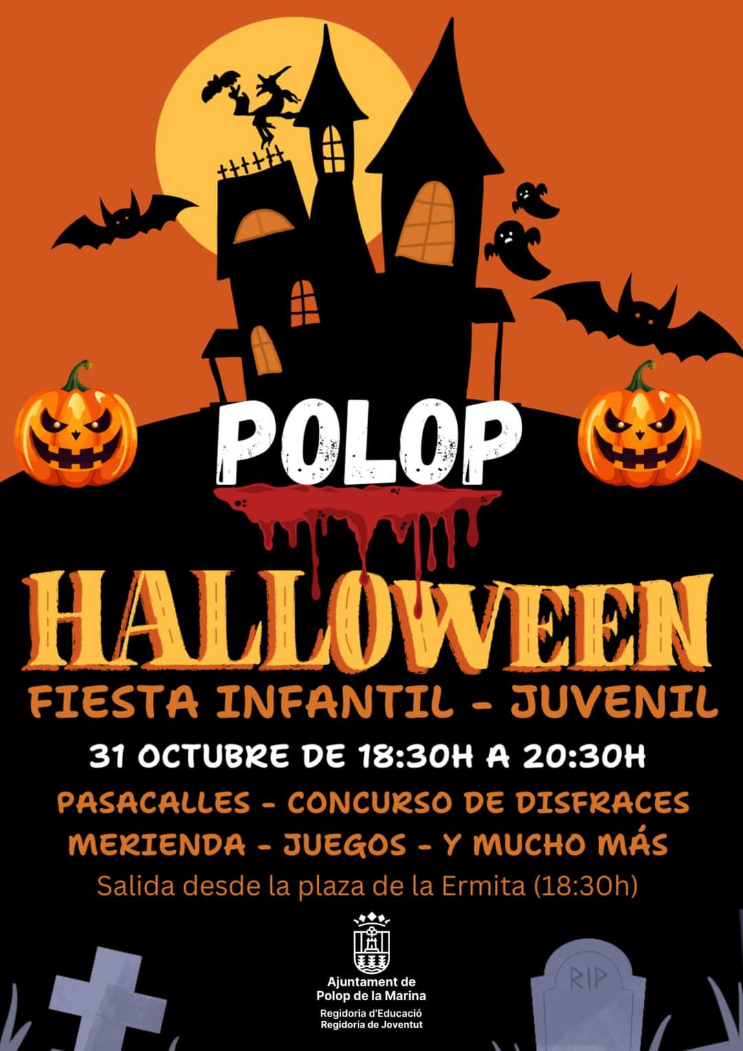 El próximo 31 de octubre, Polop de la Marina celebrará una espectacular fiesta de Halloween organizada por las Concejalías de Educación y Juventud del Ayuntamiento. Desde las 18:30 hasta las 20:30 horas, la Plaza de la Ermita se transformará en el epicentro de una celebración llena de diversión, terror y magia.