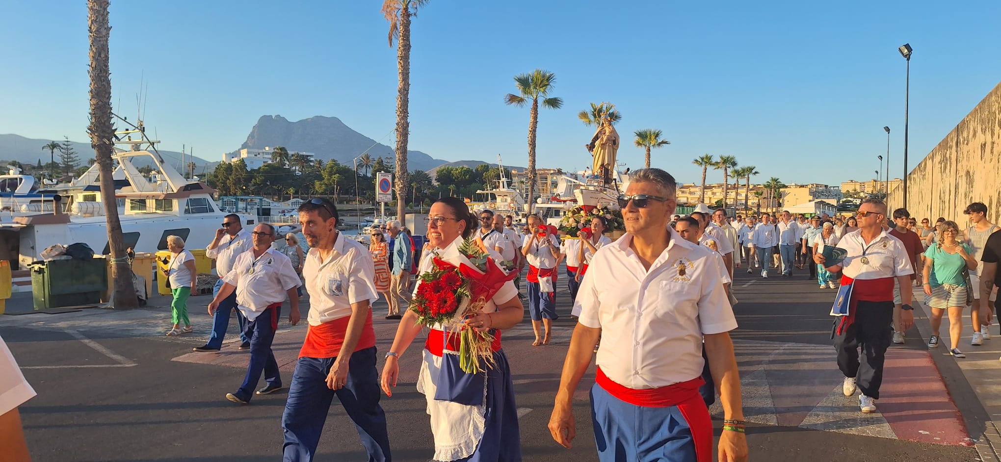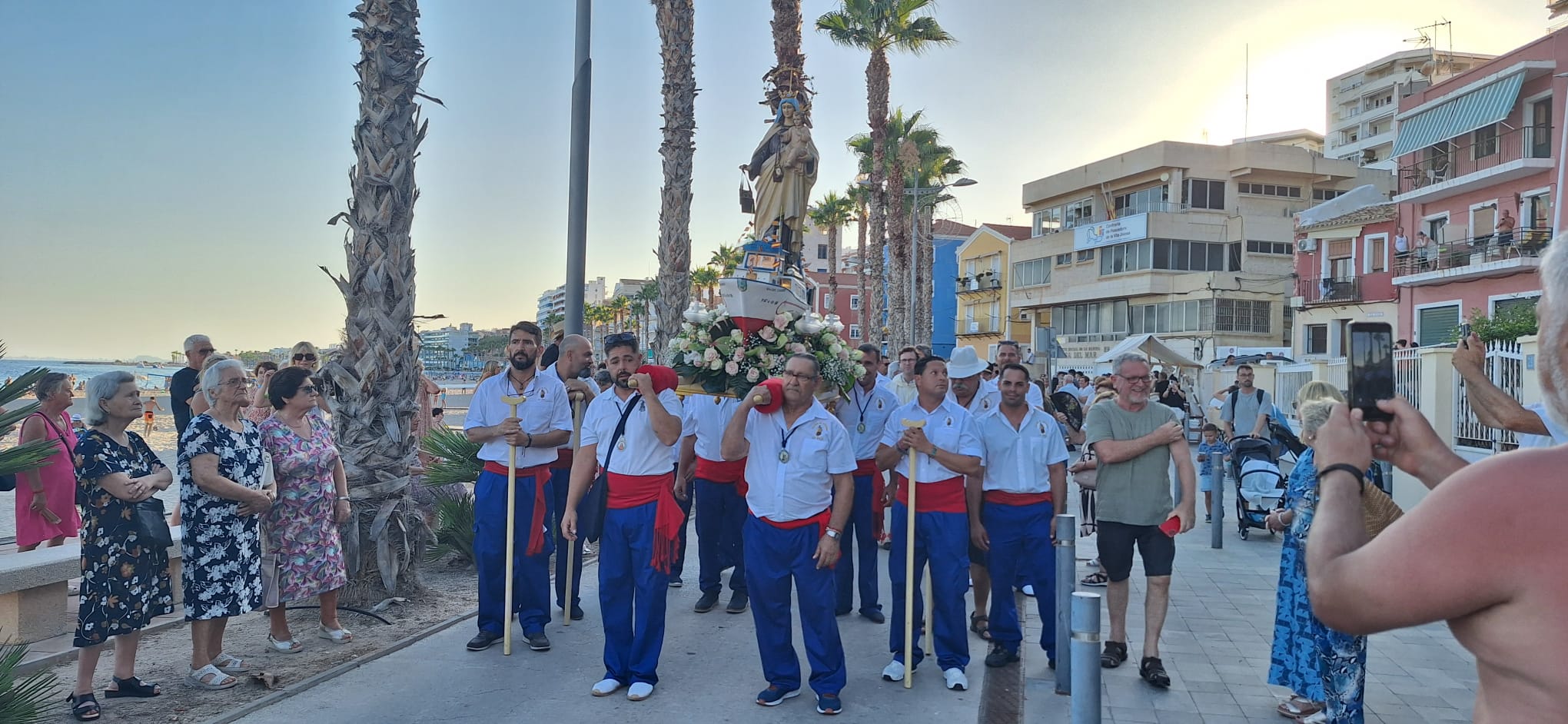 Tras la misa, oficiada por el sacerdote Juan Bautista Linares, la imagen fue llevada en procesión por marineros y marineras por las calles de la localidad donde fieles, vecinos y turistas esperaban el paso de la imagen. En el acto participaron el Alcalde Marcos Zaragoza así como miembros de la Corporación municipal; el presidente de la Cofradía de Pescadores, Miguel Solbes; entre otros.