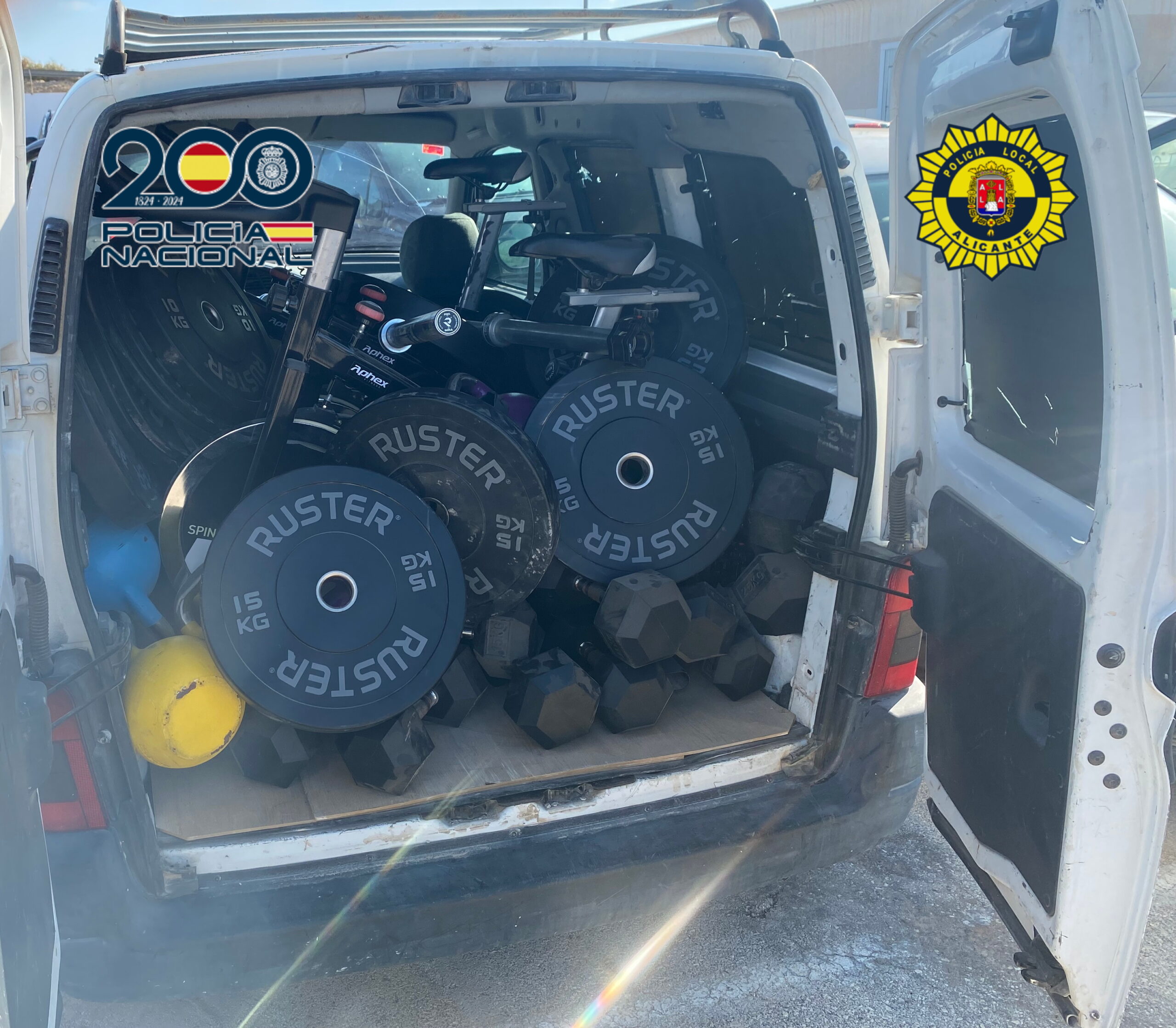 La Policía Nacional y Policía Local de Alicante han colaborado en el esclarecimiento de un robo con fuerza cometido en La Nucía. Debido al desarrollo de la investigación se pudo devolver el material de gimnasio sustraído y valorado en 6.482 euros a su legítimo propietario, resultando detenidos dos varones, españoles, de 33 y 43 años de edad.