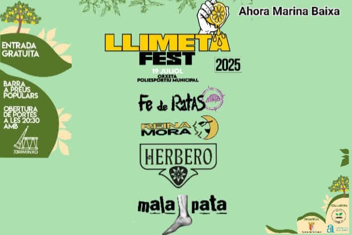 En el polideportivo municipal de Orxeta,y con entrada gratuita, el sábado 19 de julio se celebra la primera edición del Llimeta Fest , un festival que contará cómo grupo de cabeza de cartel al grupo de Punk Rock Fe de ratas.