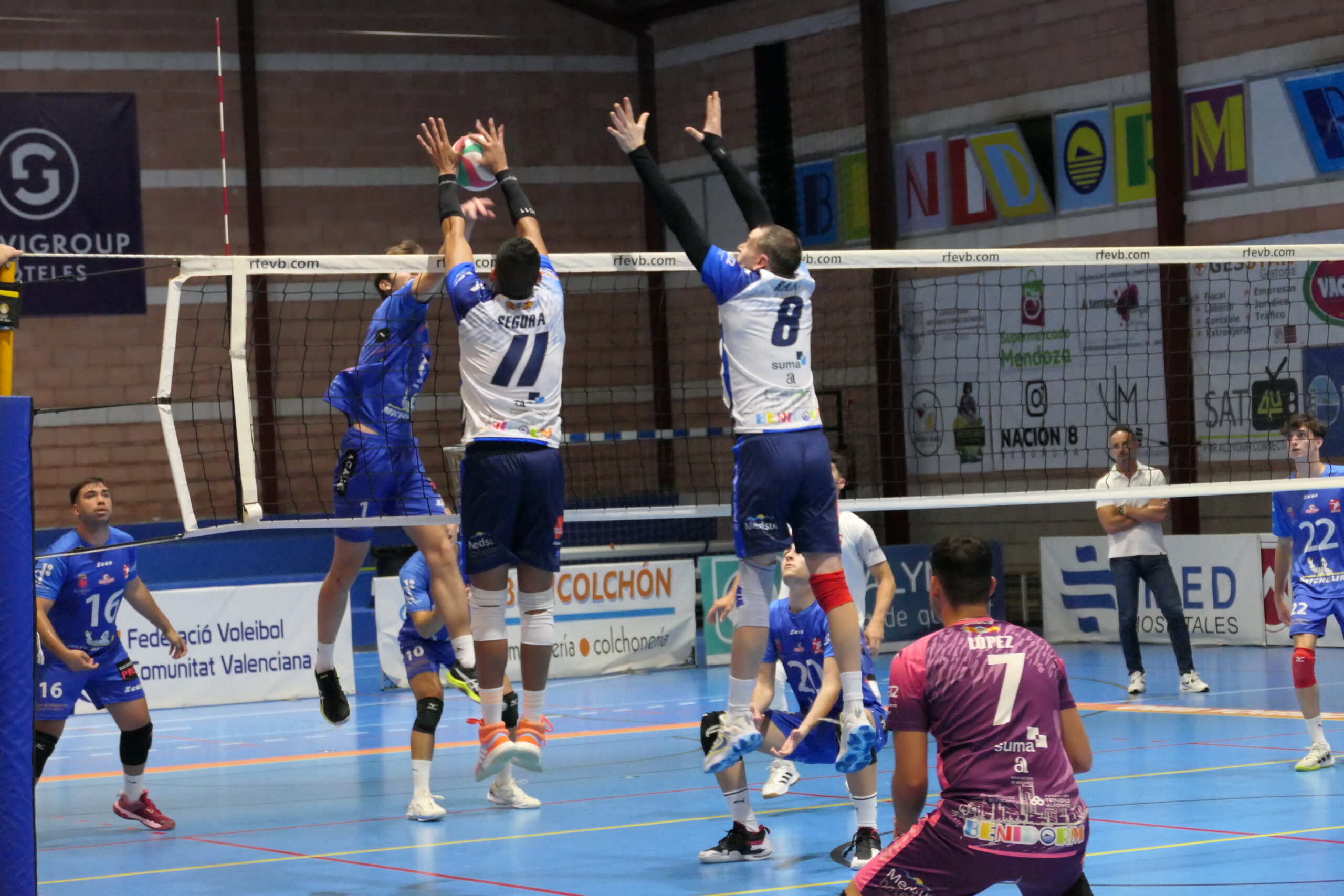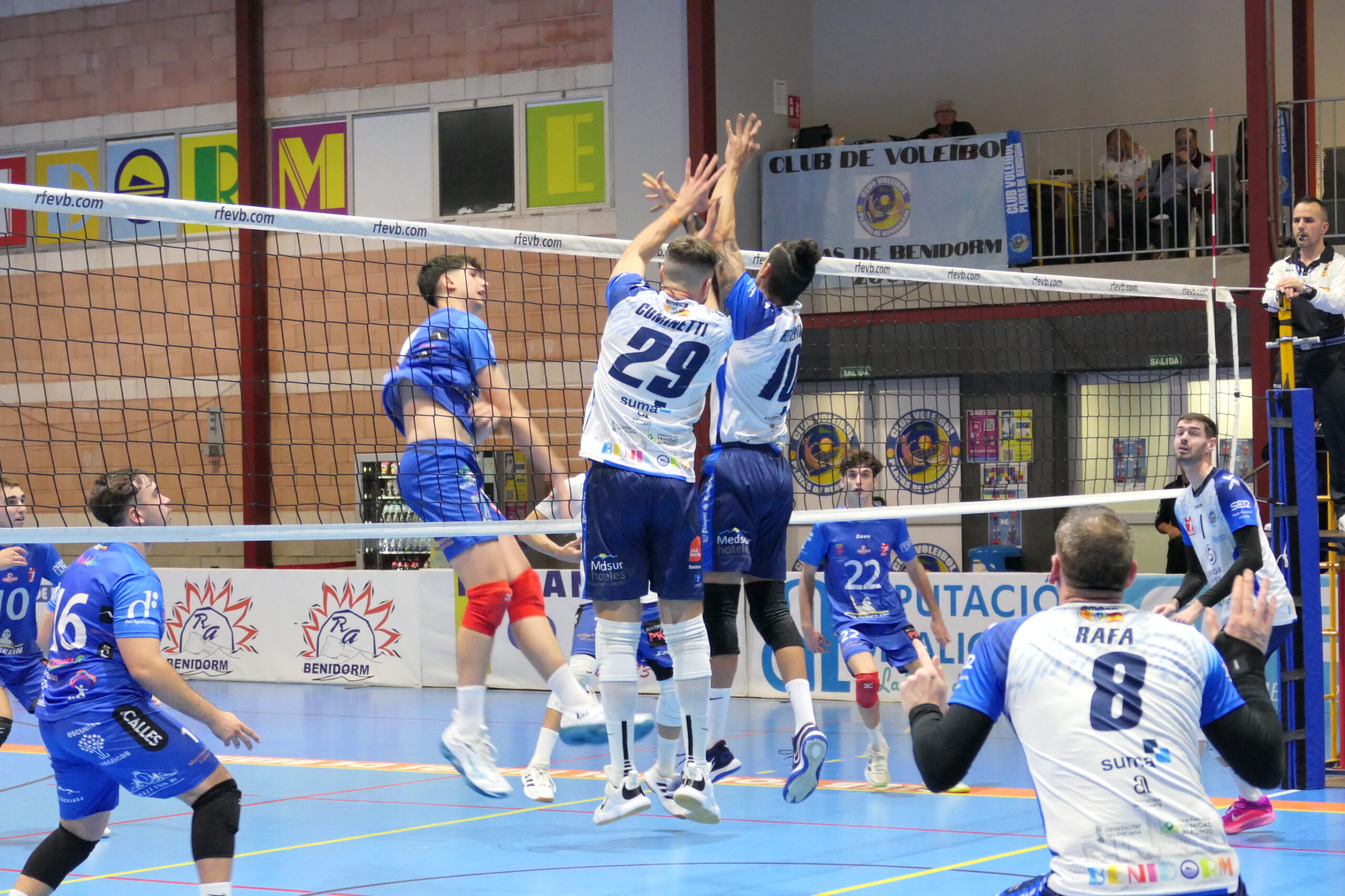 El tercer set fue una historia completamente distinta. Desde el inicio, los benidormenses dominaron con claridad, estableciendo una ventaja temprana (8-3) que ampliaron sin dejar margen para la reacción visitante. Con un juego sólido en ataque y bloqueo, el equipo cerró el set 25-17, mostrando su superioridad y aprovechando para dar puntos a los jugadores menos habituales.