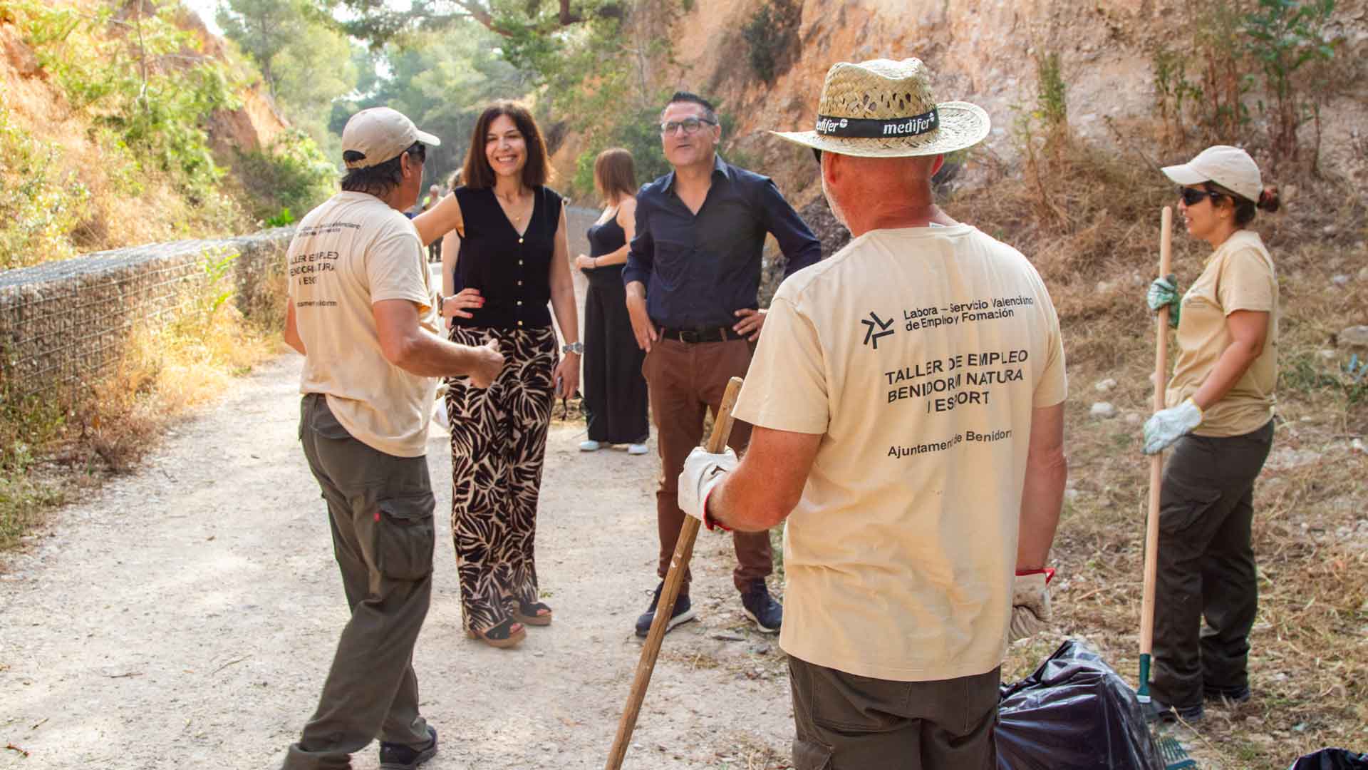 Los veinte alumnos participantes en el ‘Taller de Empleo Benidorm Natura i Esport’ están realizando distintos trabajos de mejora en el Parque del Moralet, dentro de la formación que están realizando para redirigir su futuro laboral y poder acceder en mejores condiciones a un empleo. Los ediles de Empleo y Medio Ambiente, Mónica Gómez, y de Parques y Jardines, José Ramón González de Zárate, se han desplazado este viernes hasta zona verde de Benidorm para comprobar in situ las actuaciones que se están llevando a cabo y para intercambiar con participantes y docentes impresiones sobre el desarrollo de este taller.