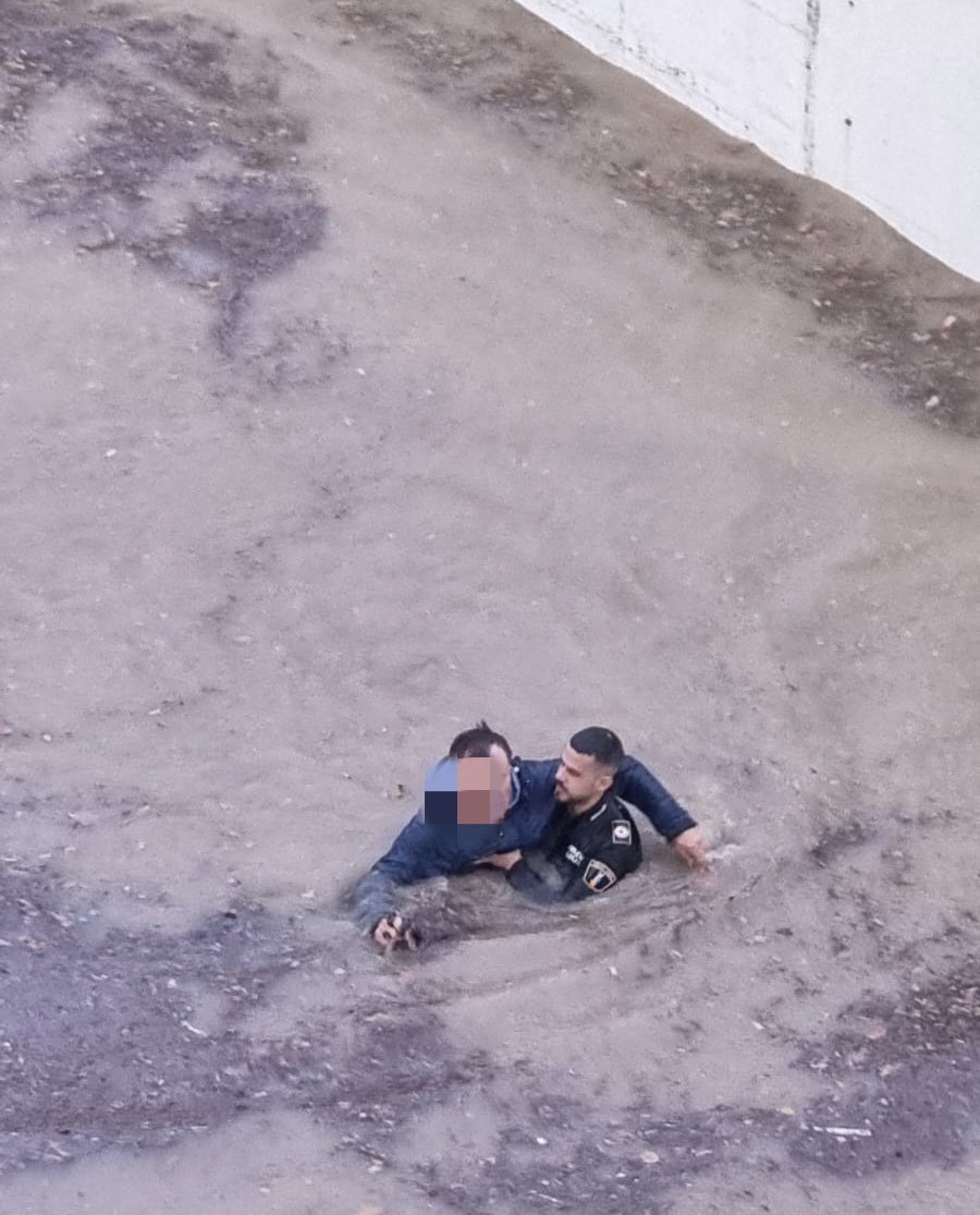 Afortunadamente la Policía Local se encontraba en el lugar. Un agente ha tenido que entrar en el agua para rescatar al conductor. Ambos se encuentran en buen estado. Destacar también la ayuda de los vecinos de la zona.