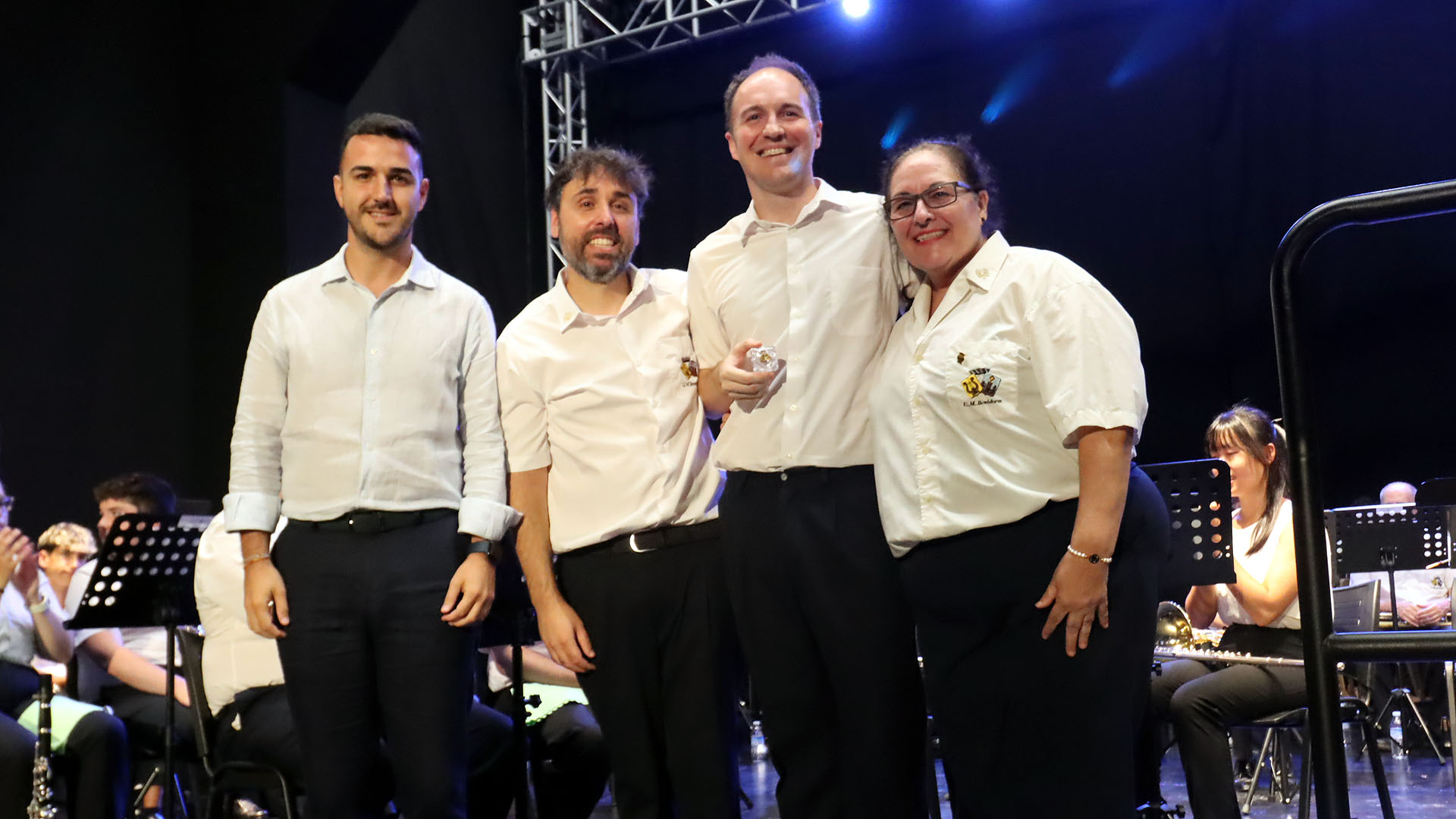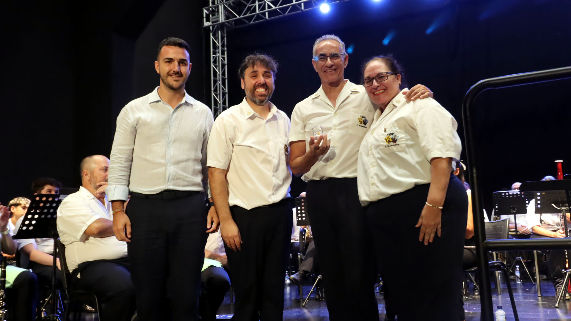 A continuación, los músicos interpretaron ‘Ross Roy’, de Jacob de Haan, antes de dar paso a uno de los momentos estelares del programa: el estreno de la marcha ‘Segària’, dedicada a esta sierra de la Marina Alta y compuesta por Bernabé Sanchís. Previamente, el propio compositor presentó la obra a los asistentes antes de dar paso a su interpretación por primera vez en público, que contó con un aplaudidísimo solo de clarinete a cargo del músico Antonio Santonja, a quien posteriormente el director condecoró con la medalla de la entidad.