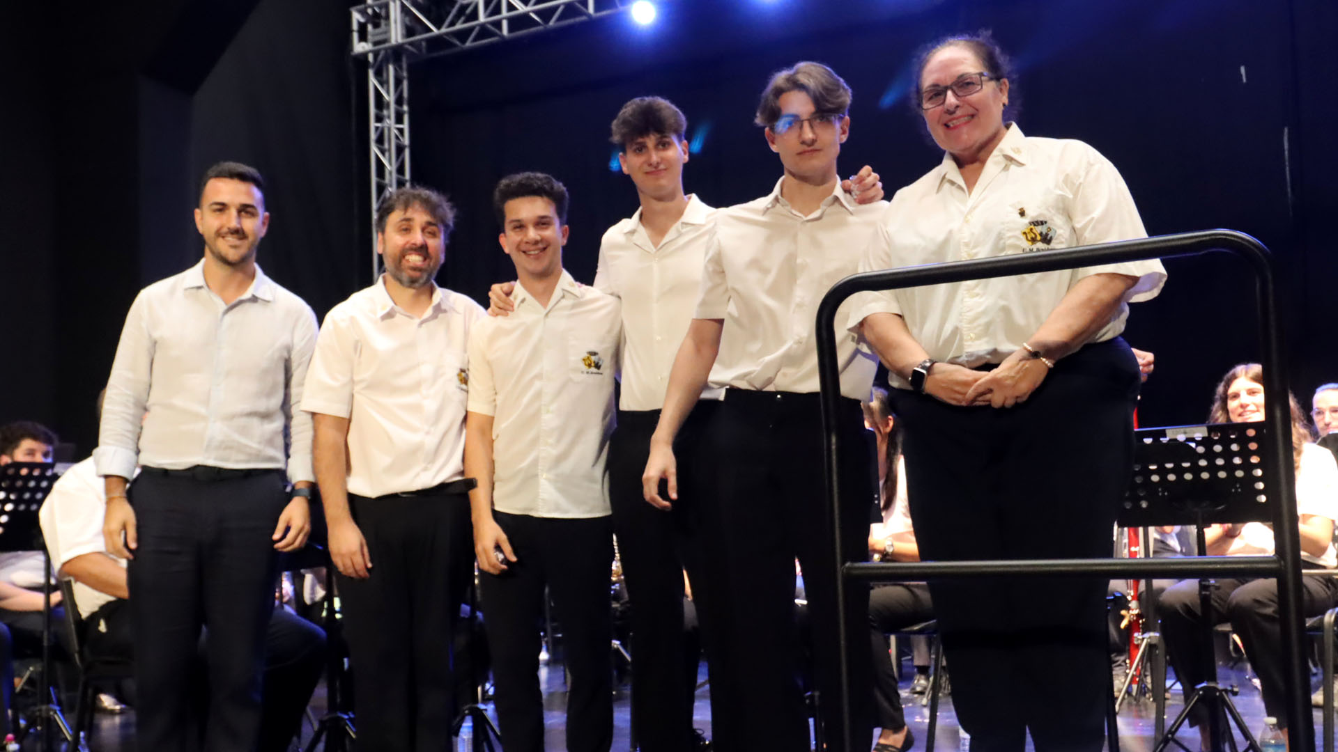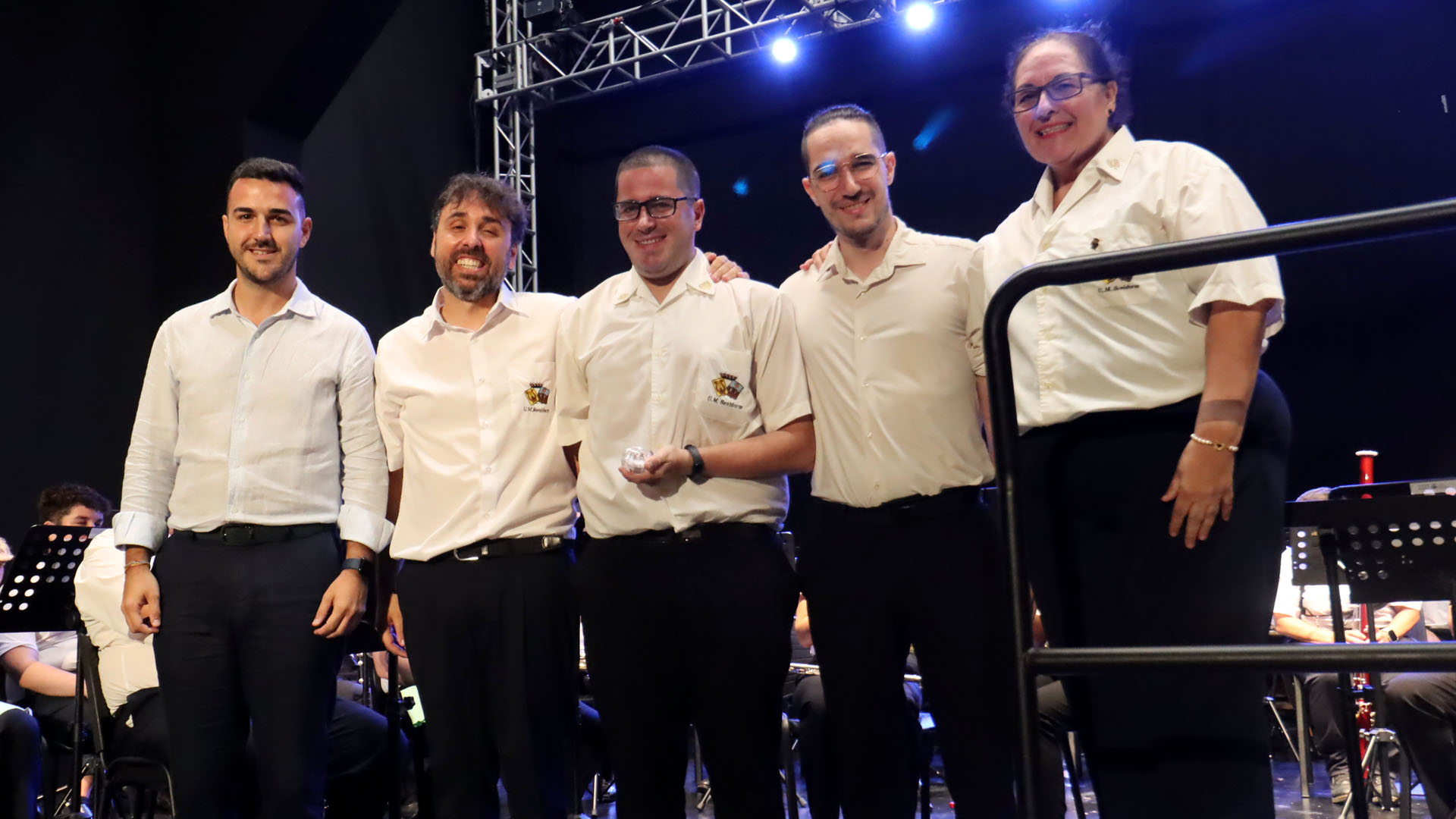 En el transcurso del recital, el concejal de Cultura y músico de la UMB, Jaime Jesús Pérez; la presidenta de la entidad, Mari Carmen García; y el director, Rafa Gómez Parra, impusieron las medallas de bronce, plata, oro y oro y brillantes a los músicos que han alcanzado los cinco, diez, 25 y 50 años, respectivamente, como socios de la entidad.