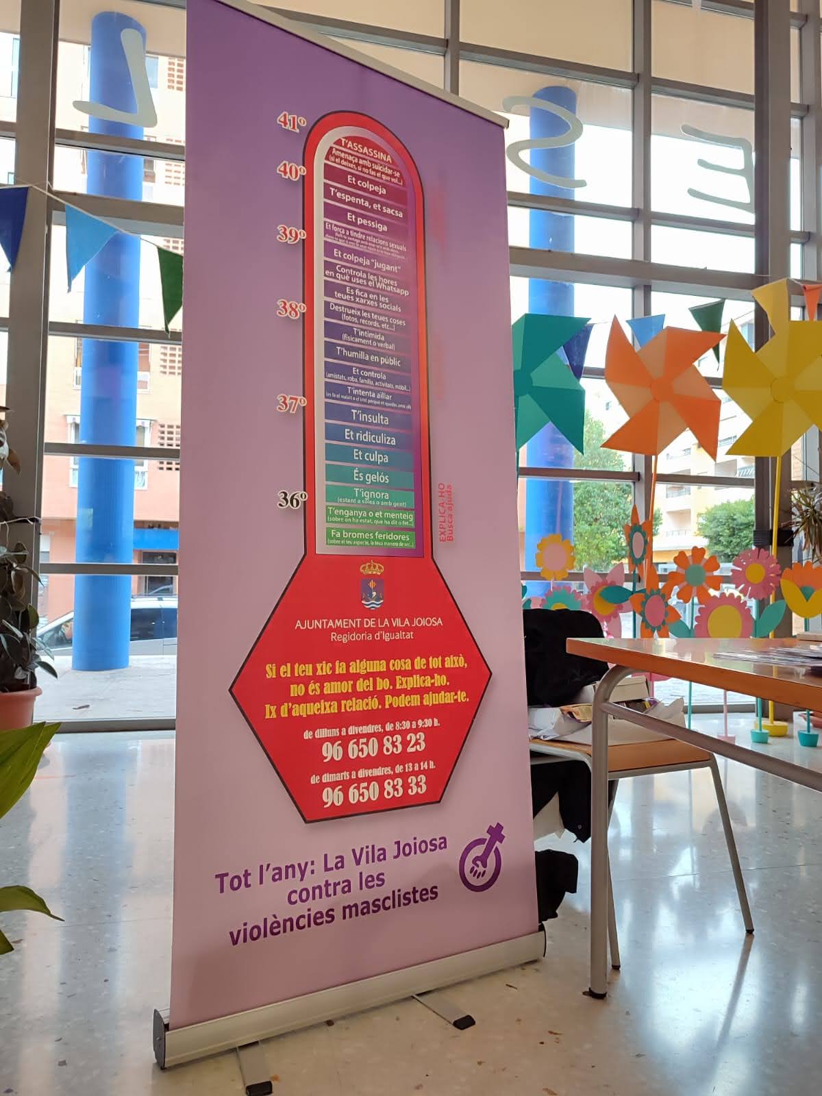 Este viernes, 15 de noviembre, se instalarán estos indicadores de violencia de género en el centro social Llar del Pensionista para que los ciudadanos puedan identificar indicios de violencia de género que puedan haber detectado en sus relaciones a través de fichas de autovaloración de su relación de pareja.