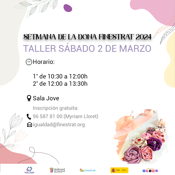 El sábado 2 de marzo habrá un taller en homenaje al centenar de mujeres que perdieron la vida en el incendio de la fábrica Triangle Shirtwaist de Nueva York. “Es uno de los dramas que se recuerdan cada 8 de marzo por las pésimas condiciones laborales de aquellas trabajadoras y que finalmente pagaron con su vida. En su recuerdo haremos un taller manual con telas el sábado 2 de marzo, en la Sala Jove”. El taller tendrá 2 turnos, de 10:30 a 12:00 y de 12:00 a 13:30 horas. La inscripción es gratuita y se puede formalizar a través del correo igualdad@finestrat.org o llamando al Ayuntamiento: 96 587 81 00.